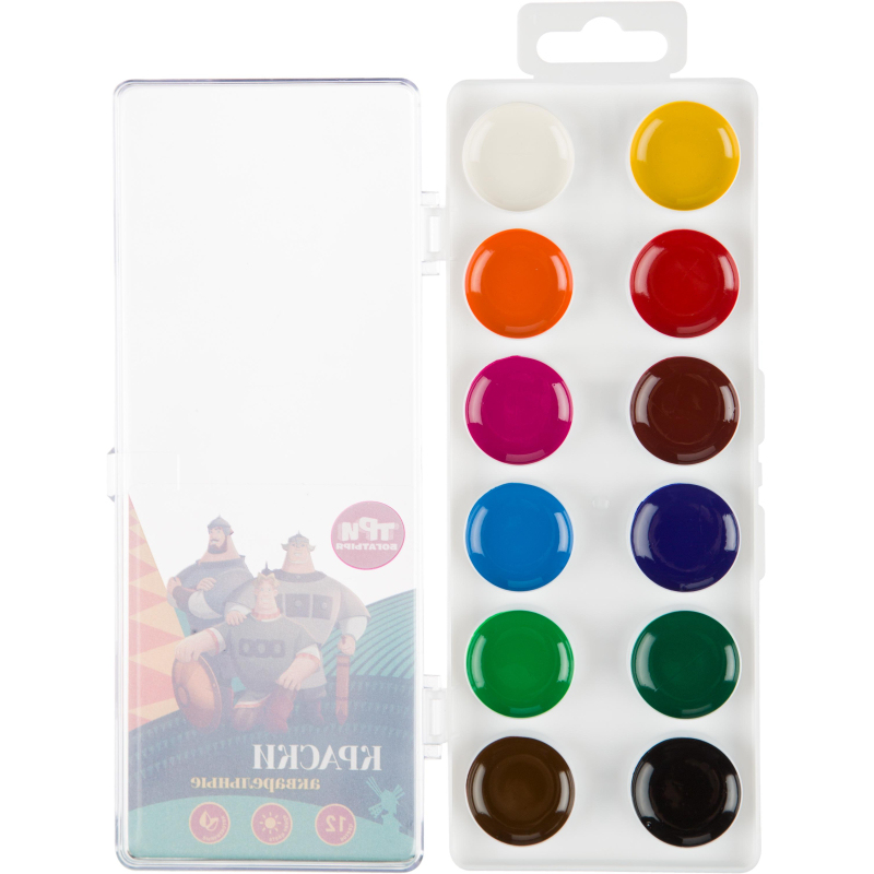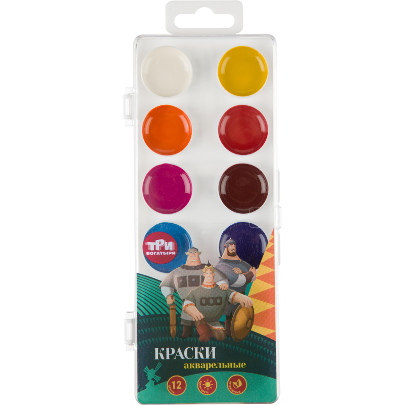 Краски акварельные Комус Три Богатыря набор 12цв,пласт уп б/кисти богатыри