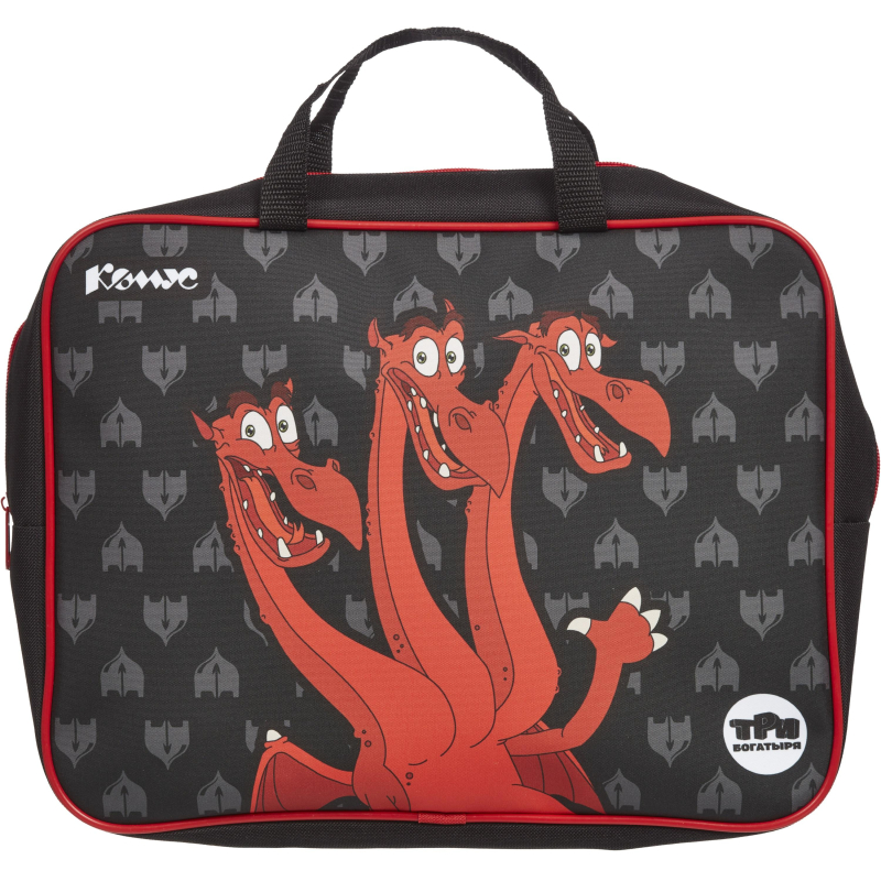 Папка для тетрадей Комус Три богатыря Горыныч. Формат изделия А4. Выполнена из полиэстера. Внутри 1 отделение. Застежка - молния. Дизайн: персонаж из мультфильма "Три богатыря" - Змей Горыныч.
