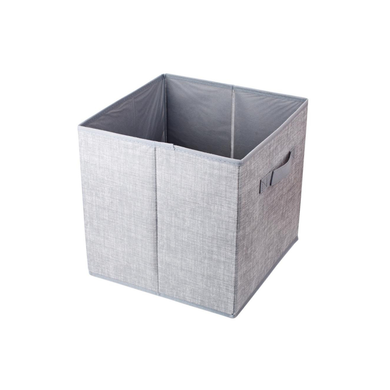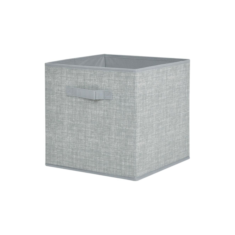 Стеллажный короб серого цвета - предназначен для упорядоченного хранения предметов одежды, белья, аксессуаров. Контейнер изготовлен из нетканого материала, отлично пропускающего воздух и задерживающего пыль. Для придания дну дополнительной жесткости предусмотрен вкладыш из твердого картона - благодаря небольшой петельке его удобно доставать. Изделие легко складывается, в сложенном виде занимает минимум места.
