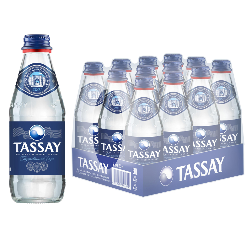 Tassay - питьевая вода для ежедневного использования, которая отличается низким уровнем минерализации, благодаря чему подходит абсолютно каждому. Обладая приятным, мягким вкусом, сильной газацией и оптимальным размером пузырьков углекислого газа быстро утоляет жажду в знойный день. Вода добывается из Арысь-Бадамского месторождения подземных вод в предгорьях западного Тянь-Шаня в Южно-Казахстанской области, г.Шымкент, скважины 1,2, 0920. Вода проходит 4 уровня очистки и разливается по бутылкам такой, какой ее создала сама природа. Объем: 0,25л Тип упаковки: стеклянная бутылка. Основной состав (мг/л): Кальций 30-80 Магний 16-35 Натрий 4-18 Калий 0-5 Гидрокарбонаты 130-400 Хлориды 2-88 Сульфаты 0-49. Общая минерализация 0,3-0,7 г/дм3 Вода Tassay выпускается в бутылках, которые благодаря строгому, презентабельному дизайну украсят стол на любом торжестве или деловой встрече.