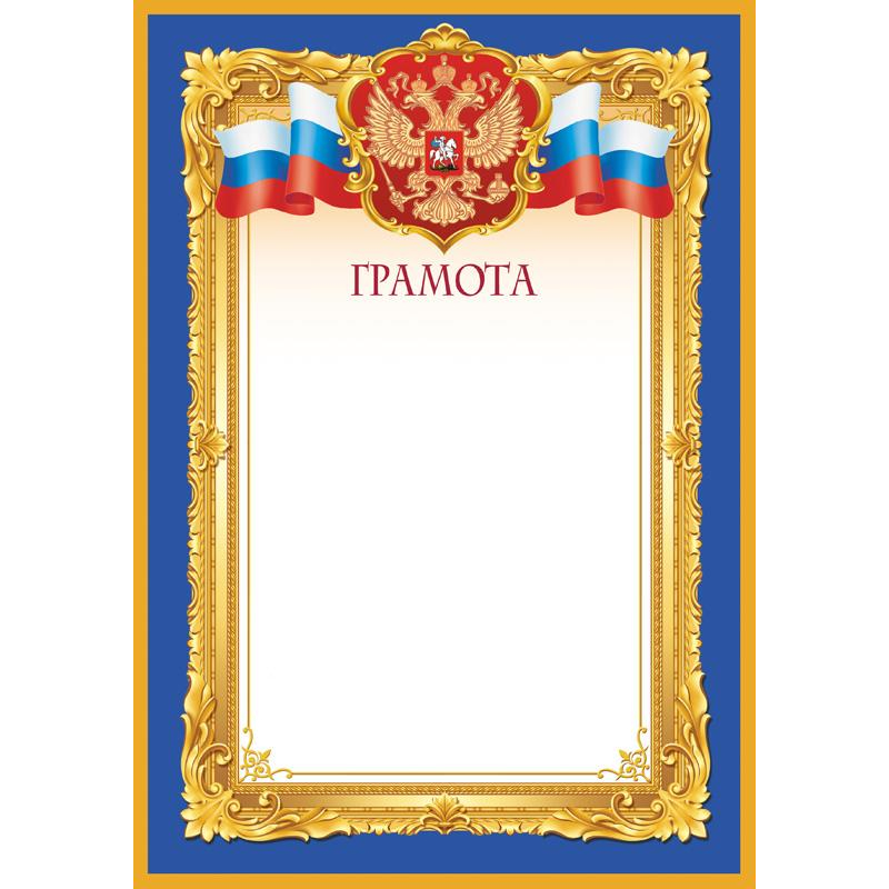 Поздравительный бланк: Грамота для официального поздравления с государственной символикой. Печать: -4+1. Бумага: картон мелованный целлюлозный с белым оборотом, плотность 190г/кв.м. Формат: 21х30 см.