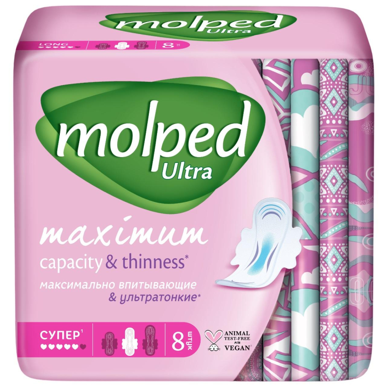 Прокладки Molped Ultra Super подарят ощущение комфорта и защищенности во время критических дней. С тиснением. С суперабсорбентом (гидрофильный акриловый полимер). Поверхность 'мягкая сеточка' - верхний слой с микропорами. Прокладки продезинфицированы ультрафиолетовым облучением.