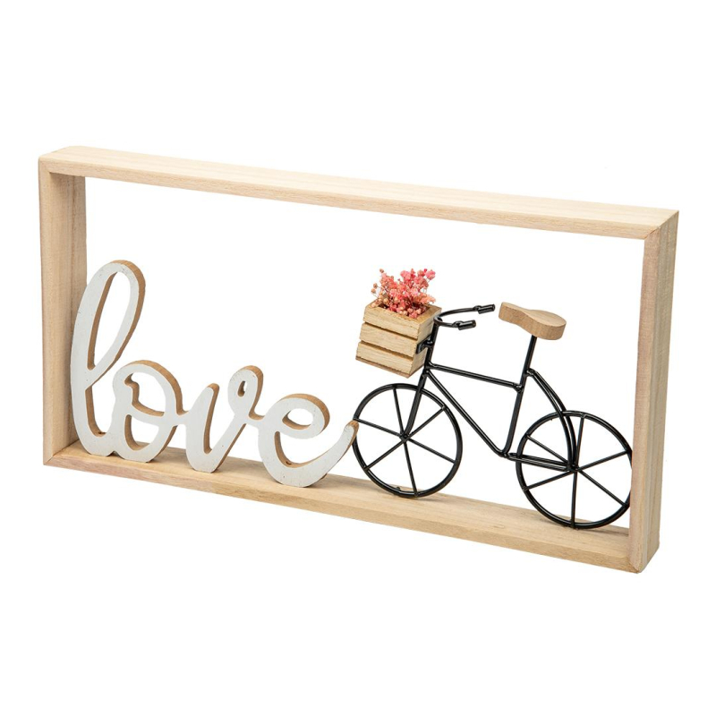 Прогулочный велосипед с корзиной, наполненной цветами, стал атрибутом романтики и любви. Изящный декор для стен напомнит, что важнее любви нет ничего на земле. Такой дизайнерский аксессуар украсит и спальню, и детскую, и кухню.Деревянная рамка, светлая надпись love, воздушное соединение всех деталей - изделие создано для того, чтобы наполнить атмосферу дома летней беззаботностью и ощущением счастья. Можно приклеить на рамку записочку для домашних или прикрепить памятные снимки и открытки.