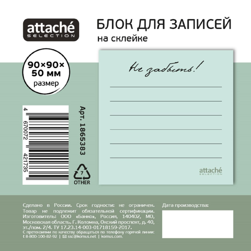 Блок для записей Attache Selection 90x90x50 Не забыть, бирюзовый