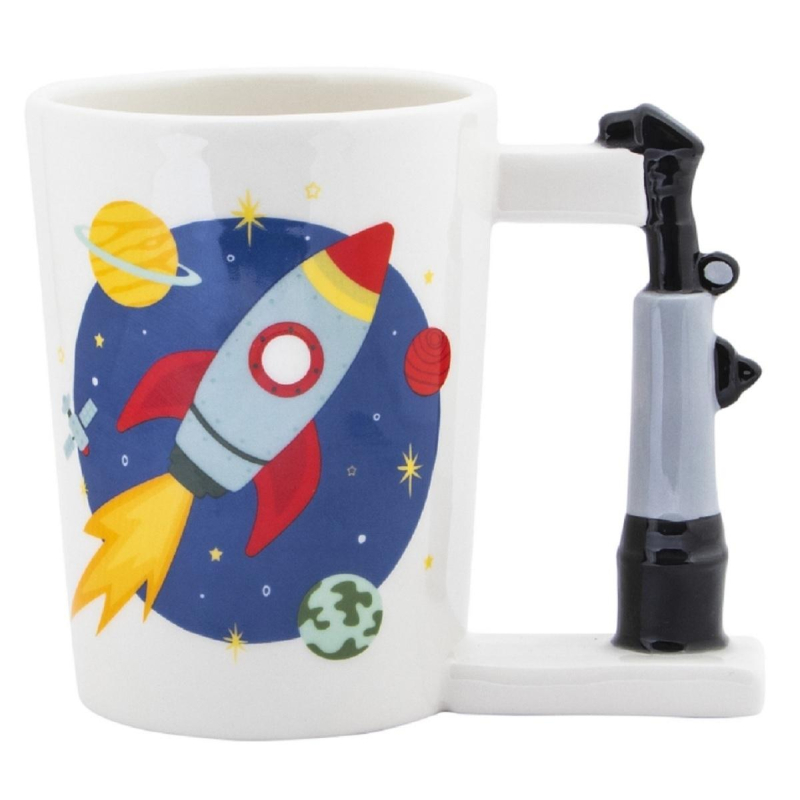 Юным астрономам не так-то просто заниматься любимым делом: телескопы большие, дорогие и до них часто еще нужно дорасти. Но наш телескоп доступен астрономам любого возраста, не требует специальных знаний и стоит совсем не дорого! Да и ухаживать за кружкой с ручкой-телескопом совсем не сложно - достаточно вовремя и аккуратно помыть. Продукция сертифицирована и соответствует требованиям ГОСТ 28391-89 Пп 1.2.7,1.2.14, 1.2.15 ГОСТ Р ИСО 6486-2-2007 П.4 Материал: Керамика. Упаковка: цветная картонная коробка, пакет внутри. Размер упаковки:130x95x135 мм. Размер кружки: 113x135x87 мм. Полезный объем: 350 мл Полный объем: 400 мл. Вес нетто: 290 гр. x Перед первым использованием тщательно промыть в теплой воде с добавлением средства для мытья посуды. x Запрещено любое копирование и использование фотографий без письменного разрешения правообладателя