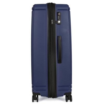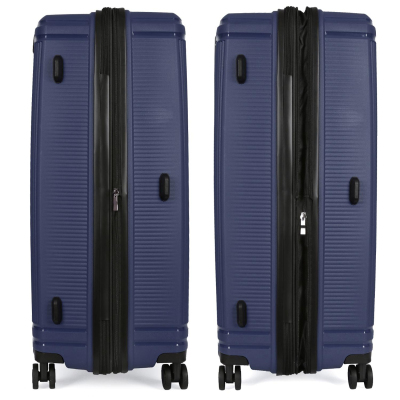 Вместительный чемодан Fabretti размера XL с возможностью увеличения объема, размер: 76x51x32 (37 с расширением). Модель в синем оттенке выполнена из полипропилена - современного материала, для которого характерны высокая ударопрочность, стойкость к перепадам температур, отличная износостойкость. Внутри 2 отделения: одно - с эластичными ремнями-фиксаторами, другое - с тканевой перегородкой на молнии и 2 карманами на молнии. Характеристики модели: - объем 122 л; - возможность увеличения объема; - 2 отделения (есть 2 кармана на молнии, один из которых с обзорной сеткой); - 4-е двойных колеса-спиннера со свободным вращением на 360°; - телескопическая ручка (фиксация в 2-х положениях); - кодовый замок с системой TSA (позволяет СБ аэропортов досмотреть содержимое багажа); - боковые ручки для комфортной транспортировки; - фиксаторы для одежды внутри чемодана.
