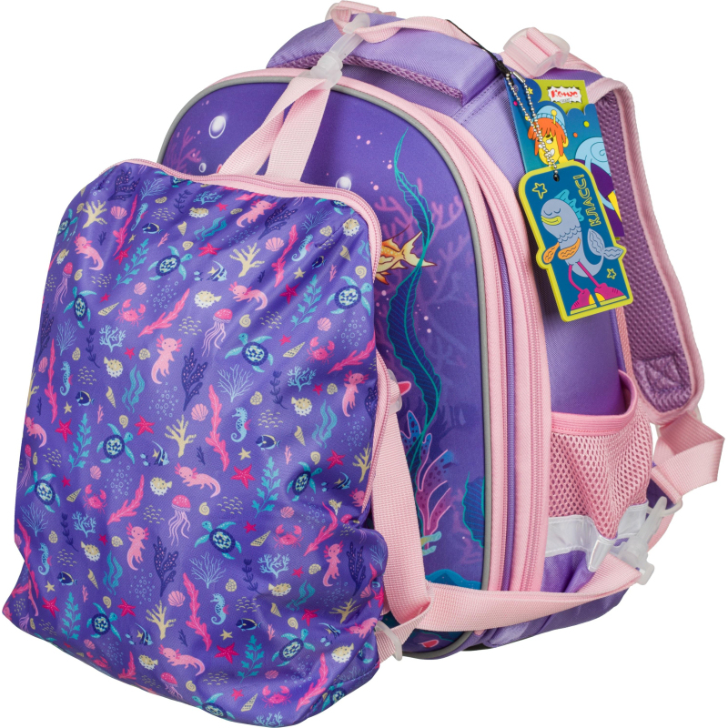 Школьный ранец с дизайном Комус Класс для девочек младших классов с удобным пристегивающимся мешком. Ранец имеет обтекаемую эргономичную форму и жесткий каркас. Удобен за счет анатомической спинки из дышащего материала. Ранец выполнен из полиэстера. Имеет два вмесительных отделения на молнии. В основном отделении - гибкая перегородка, предназначенная для удобного хранения книг и тетрадей, во втором - сетчатый карман и карман-органайзер. Ранец оснащен двумя ручками: одна узкая, чтобы вешать на парту, вторая широкая и мягкая, чтобы удобно носить в руке. Широкие удобные лямки из воздухообменного сетчатого материала регулируются по длине и по спинке ранца - удобно подогнать под рост ребенка, что позволяет добиться наиболее комфортного расположения ранца на спине. Благодаря устойчивому плотному дну, которое держит форму, ранцем удобно пользоваться и ставить около парты, ранец не падает. Боковые карманы-сеточки для бутылки и прочих аксессуаров. Для безопасности ребенка в темное время суток предусмотрены светоотражатели на передней части ранца, на лямках и над боковыми карманами. Особенности: пристегивающийся мешок из полиэстера на молнии, который легко крепится к ранцу и фиксируется за счет регулируемых лямок. Мешок можно носить отдельно на спине, как ранец, либо в руках, для чего предназначена удобная для преноски ручка. Размер: 350x255x135 мм. Базовый цвет: фиолетовый. Объем: 12 л. Вес: 0, 864 кг.