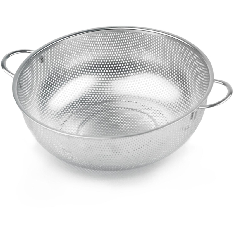 Дуршлаг-миска Luxstahl диаметр 34 см нержавеющая сталь (RGS-3016B). Дуршлаг-миска - полезный и необходимый аксессуар на каждой кухне. Он выполнен из высококачественной нержавеющей стали, отличается прочностью и долговечностью, не подвергается коррозии и отвечает всем гигиеническим нормам и требованиям. Дуршлаг используется для слива воды с вареных овощей, макарон, круп, также дуршлаг удобен для промывания мелких ягод, таких как смородина, вишня, клубника, малина, промывания свежей зелени. Оптимальное количество отверстий и их диаметр способствует быстрому стеканию воды. Дуршлаг оснащен двумя удобными ручками, а благодаря плоскому дну изделие можно поставить прямо в раковину и не опасаться, что он опрокинется. Удобный размер позволит промыть большое количество продуктов сразу. Такой удобный и практичный аксессуар станет незаменимым помощником на кухне для каждой современной хозяйки. Подходит для мытья в посудомоечной машине.