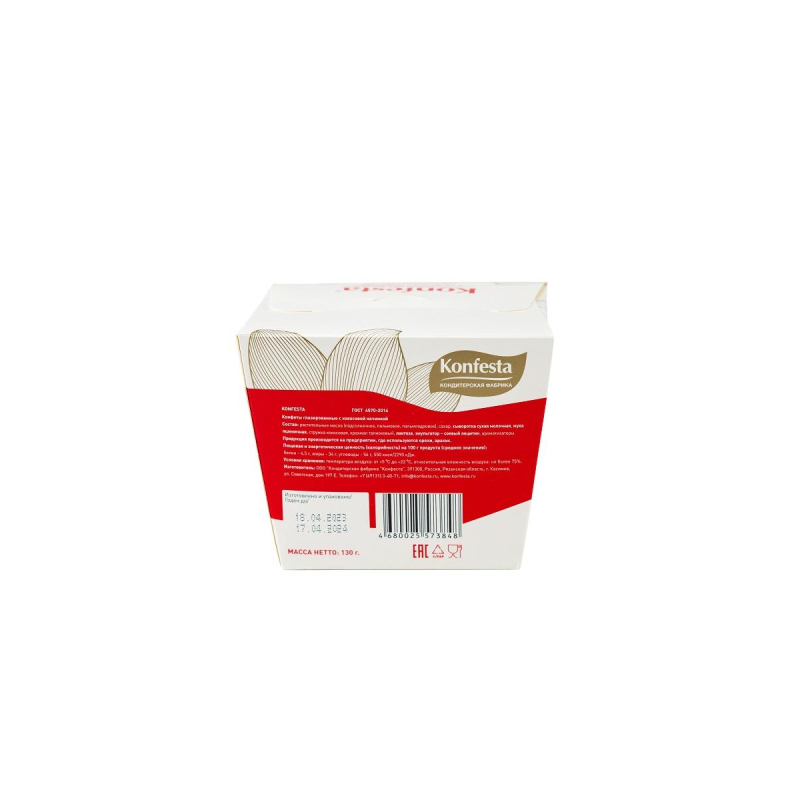 Конфеты Konfesta - это удовольствие, которое приятно не только дарить, но и получать в подарок! Восхитительный аромат тропических кокосов, потрясающий легкий сливочный крем и изумительный нежный вкус - это истинное наслаждение, подаренное Вами себе и своим любимым! Вес- 130 г Пищевая ценность на 100 г продукта - белки 4,5 г., жиры 34 г., углеводы 56 г Энергетическая ценность - 550ккал/2290кДж Срок годности - 365 дней Условия хранения - температура воздуха: от +5С до +22С, относительная влажность воздуха: не более 75%. Производитель - КФ КОНФЕСТА Страна производства - Россия.