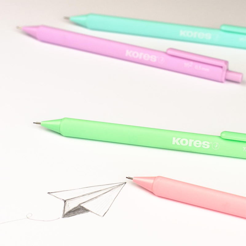 Механический карандаш Kores M1-Grafitos разработан специально для студентов и людей, работающих в офисной среде, он является неотъемлемым аксессуаром для повседневных письменных задач, черчения и рисования. Этот прочный механический карандаш очень удобен благодаря его эргономичной треугольной форме и комфортно лежит в руке. Карандаш с убирающимся цанговым механизмом выполнен в минималистичном современном дизайне с прорезиненным матовым корпусом в пастельных цветах и оснащен практичным клипом, позволяющим закрепить карандаш в кармане или тетради для записей. В ассортименте 4 цвета корпуса: розовый, мятный, лиловый и бирюзовый. Кроме того, сменный грифель (0.5 мм) обеспечивает аккуратное и точное письмо.