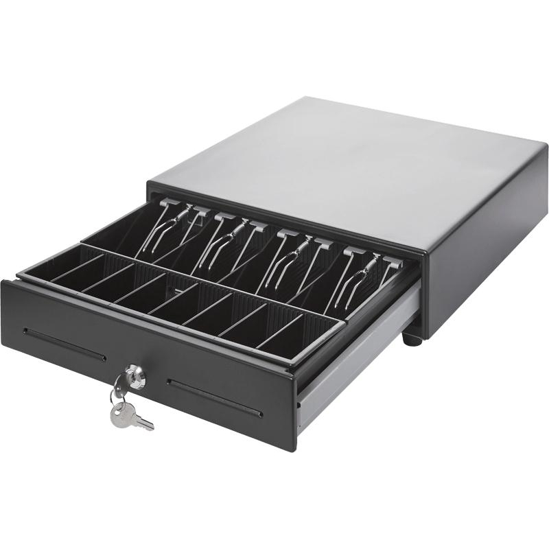 Денежный ящик Paytor HT-330SP (распайка Штрих) - идеальное решение для небольших магазинов и кафе. Он отличается малыми габаритами, что помогает сэкономить на транспортировке и организовать эффективную работу кассира в ограниченном пространстве. Внутренний пластиковый лоток на металлическом поддоне содержит 13 отделений для хранения: 4 прямоугольные ячейки с фиксаторами для купюр, 8 отделений с покатым краем для монет и дополнительный отсек для чеков и крупных купюр с доступом с передней панели. Размер внутренних отделений можно регулировать. Денежный ящик способен открываться как при подаче напряжения в 24 Вольт, так и в 12 Вольт.