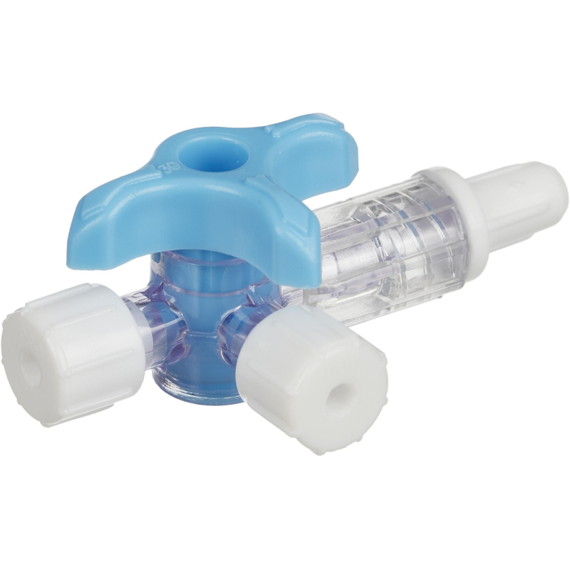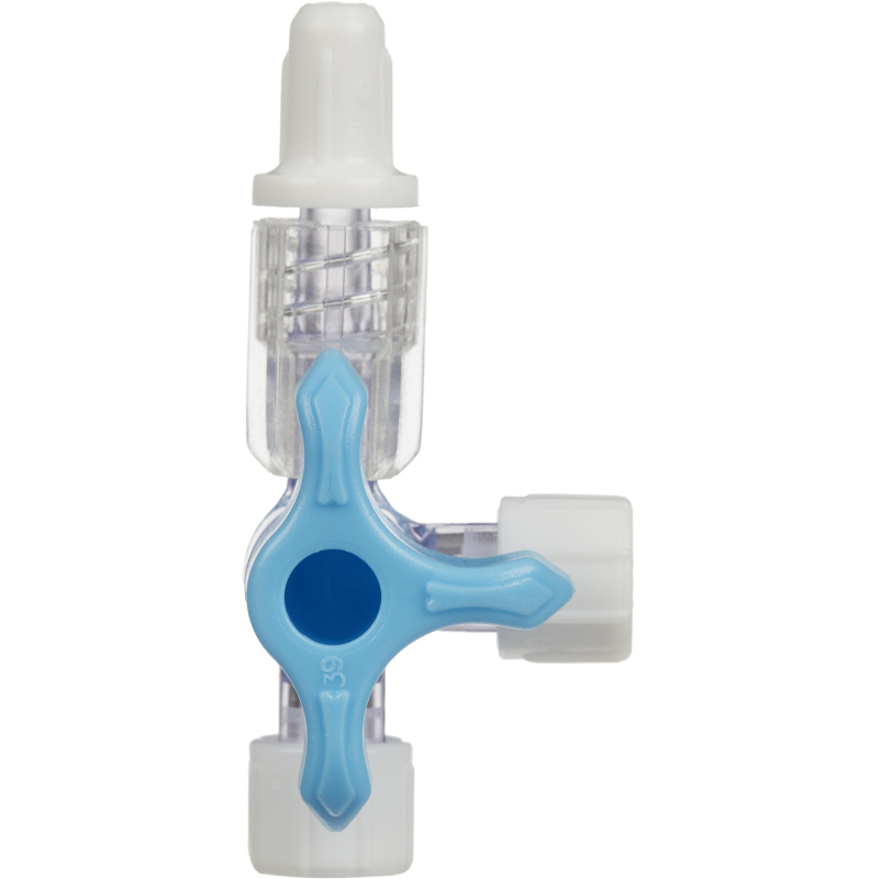 Кран трехходовой инфузионный Polymed Polyway Pro Click синий (100 штук в упаковке). Трехходовой инфузионный коннектор (краник) - это устройство для подключения нескольких инфузионных систем к сосудистому катетеру и параллельного проведения инфузии нескольких растворов. Имеет в составе два луэр лок female разъема для подключения инфузионных систем, луэр лок male для соединения с катетером и цветную поворотную рукоятку потоков инфузии. - липидорезистентен; - трехходовой краник с фиксацией в положении 45°; - конструкция луэр лок male разъема обеспечивает вращение подсоединенного коннектора на 360°; - прозрачный корпус; - стрелочные указатели направления инфузии на рукоятке; - цвет рукоятки: синий; - минимальный объем заполнения обеспечивает точность введения препарата; - допустимое давление до 4,5 бар.