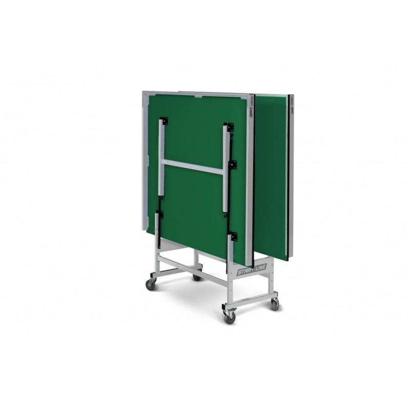 Стол для настольного тенниса с усиленной рамой, двойными раскосами, идеально фиксирующими стол во время игры и тренировок. Толщина столешницы обеспечивает отличный отскок мяча, что позволяет использовать стол для тренировочных занятий в спортивных клубах. Благодаря единой раме стол просто складывается и легко транспортируется. Размер в сложенном виде длина 152,5 см, ширина 60 см, высота 187 см. Сетка в комплект не входит. Правило хранения - убирать на длительное хранение в зимний период в отапливаемое помещение.