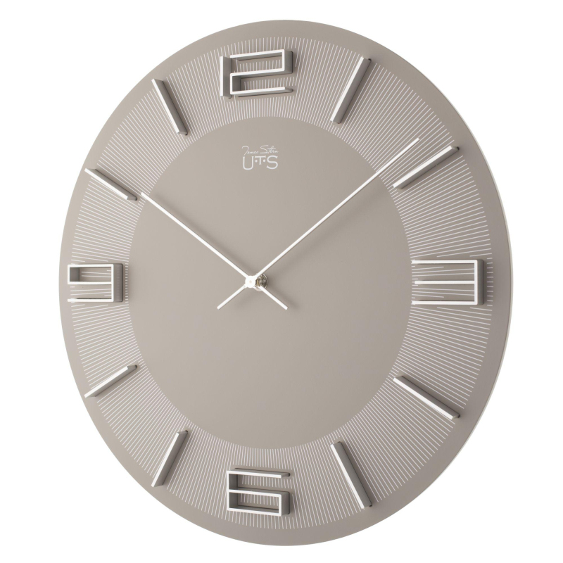 Настенные часы в лаконичном современном стиле. Основная часть корпуса выполнена из МДФ и тонирована в серо-коричневом цвете. Арабские цифры 3, 6, 9 и 12, а также часовые индексы выполнены из матового алюминия и установлены в, филигранно выполненные, ложементы на корпусе. Тонкие и изящние алюминиевые стрелки отполированы до зеркального эффекта. Кварцевый механизм Young Town (Гонконг). Требуется 1 батарейка типа АА (не включена в поставку).