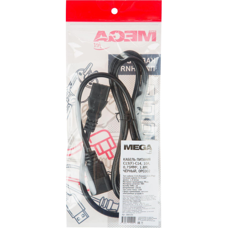 Кабель ProMega C13(F)-C14 1.8 метра (OPC002) Внешний вид и/или характеристики товара могут быть изменены производителем в соответствии с производственным процессом.