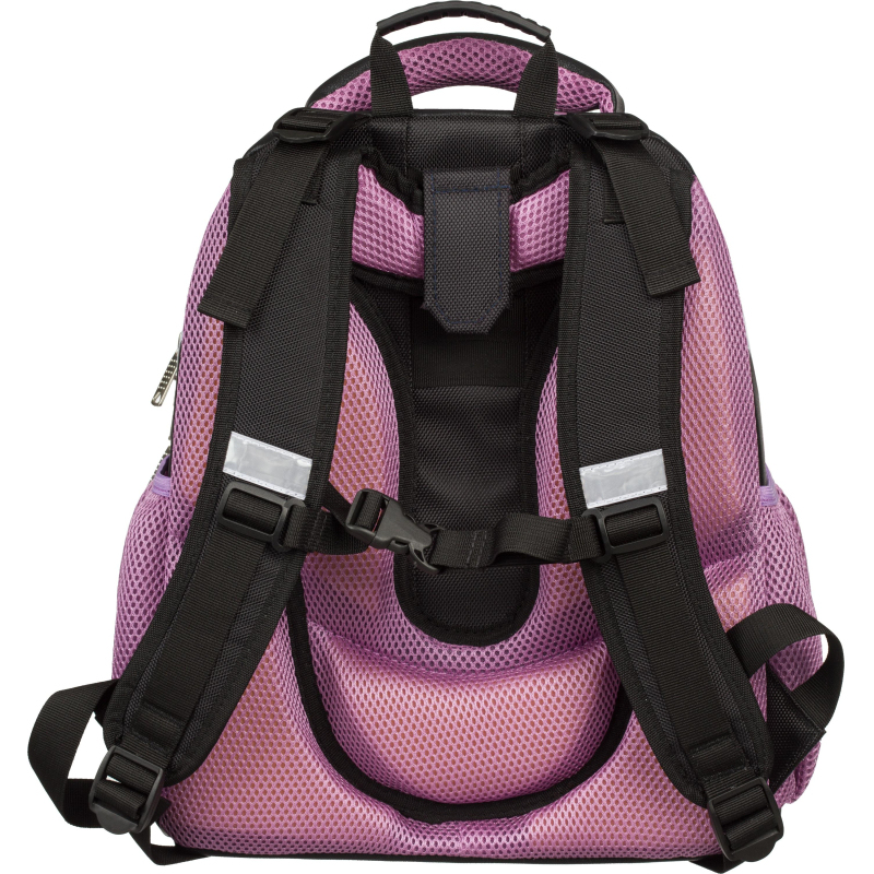 ?Ранец для девочки анатомический классической формы с? ?откидной крышкой. Компактная обтекаемая форма. Ранец выполнен из? ?экокожи и? ?полиэстера. Жесткий каркас. Анатомическая спинка. Благодаря устойчивому дну и? ?ножкам ребенку будет удобно находить нужные учебники и? ?тетради. Боковые карманы с? ?сеточкой подходят для переноски маленькой бутылочки с? ?водой и? ?прочих небольших аксессуаров. Широкие удобные лямки из? ?воздухообменного сетчатого материала регулируются по? ?длине и? ?по? ?спинке рюкзака? ?-?? удобно подогнать под рост ребенка. Плотное дно удерживает форму. Для дополнительной безопасности ребенка в? ?темное время суток светоотражатели на? ?лямках и? ?над боковыми карманами??.?? ??Размер: ??280??x??150??x??360?? мм.?