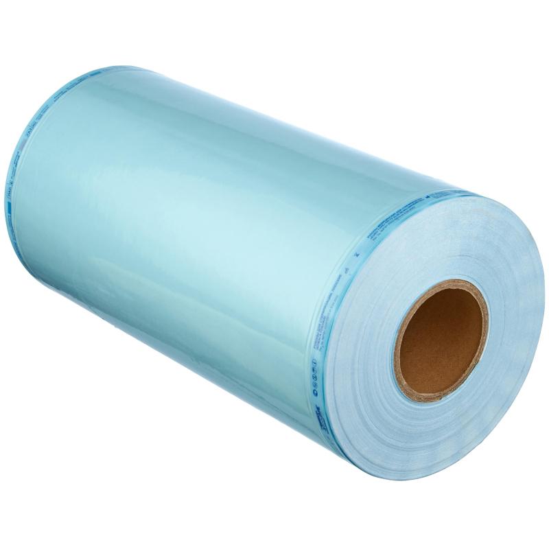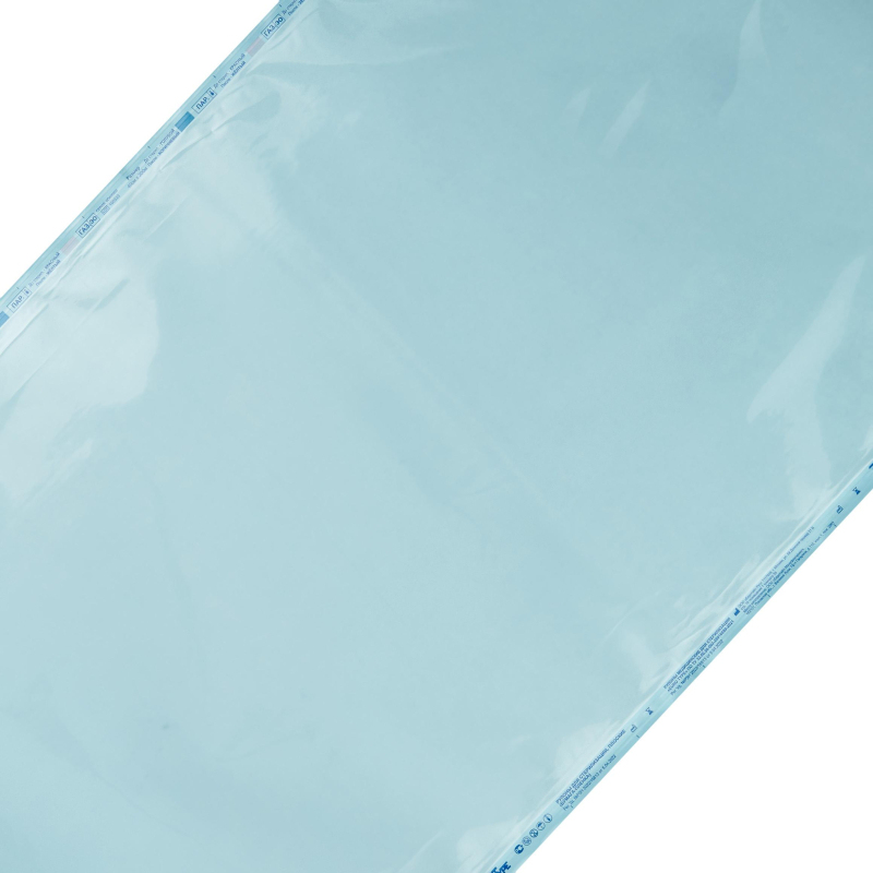 Рулон для стерилизации комбинированный EuroType для паровой/газовой стерилизации 400 мм x 200 м. Стерилизационные рулоны изготовлены из: -непрозрачная сторона - медицинская бумага (60g/m2), на эту сторону наносится маркировка; -прозрачная сторона - прозрачная полимерная пленка (полиэстер = 12um + полипропилен=40um). Прозрачная и непрозрачная стороны соединены между собой термошвами. Прозрачная сторона позволяет легко идентифицировать упакованные изделия. На место шва рулонного материала нанесены обозначения: -торговая марка; -маркировка типоразмера; -цветные химические индикаторы в виде двух параллелепипедов, под которыми написано название соответствующего стерилизующего агента с описанием цвета, приобретаемого индикатором после стерилизации. Для парового метода - индикатор голубого цвета, после стерилизации приобретает коричневый цвет; для газового метода с применением окиси этилена - индикатор розового цвета, после стерилизации приобретает желтый цвет; для газового метода с применением формальдегида - индикатор желтого цвета, после стерилизации приобретает зеленый цвет; -предостережение "не использовать, если упаковка повреждена", "хранить в прохладном сухом месте"; -обозначение: "одноразовое изделие". Стерилизационные рулоны, изготавливаемые из рулонного материала, запечатывают с помощью термосварочных аппаратов. При использовании рулонного материала из него предварительно готовят пакеты. С помощью специальных режущих устройств нарезают отрезки, соответствующие длине изделий, подлежащих упаковыванию, с учетом запаса на свободное размещение изделия и ширину швов. Одну сторону запечатывают с помощью термосварочного аппарата. Правильно выполненный термошов должен быть не менее прочным, чем готовые боковые швы, при этом бумага и полимерная пленка не должна быть прожжена. Ширина термошва должна быть не менее 8 мм. В этой области окрашенная полимерная пленка приобретает более темный оттенок, что позволяет по равномерности окраски визуально контролировать целостность термошва.