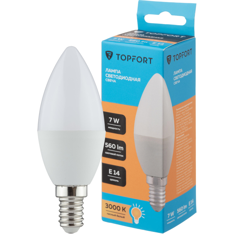 Светодиодная лампа Topfort (матовая) формы свеча, с цоколем Е14, мощность 7В. Является аналогом лампы накаливания в 60 Ватт. Матированное покрытие колбы позволяет рассеивать свет максимально приятно для восприятия глазом человека. Преимущества изделия: - Срок службы 25 000 часов - Диапазон рабочих температур от - 25 до +50°C - Отличается низким энергопотребление, что существенно снизит счета за оплату электроэнергии - Создает равномерное естественное освещение - Экологически и пожаробезопасна, не содержит ртути и других вредных химических веществ; - Не требует специальной утилизации; - Отсутствуют низкочастотные пульсации светового потока, негативно влияющих на зрение Характеристики изделий: - Коэффициент цветопередачи Ra ? 80 - Световой поток 560 Лм - Цветовая температура 3000 К - Угол светового пучка 240° Основные габариты (мм): - Длина 100 мм (L) - Диаметр 37 мм (D) Области применения: - Бытовое использование: потолочные, настенные, настольные светильники, люстры и бра - Коммерческое освещение: мебельные салоны, салоны красоты, столовые, кафе, рестораны, фитнес-центры и т. д. Внешний вид и/или характеристики товара могут быть изменены производителем в соответствии с производственным процессом.