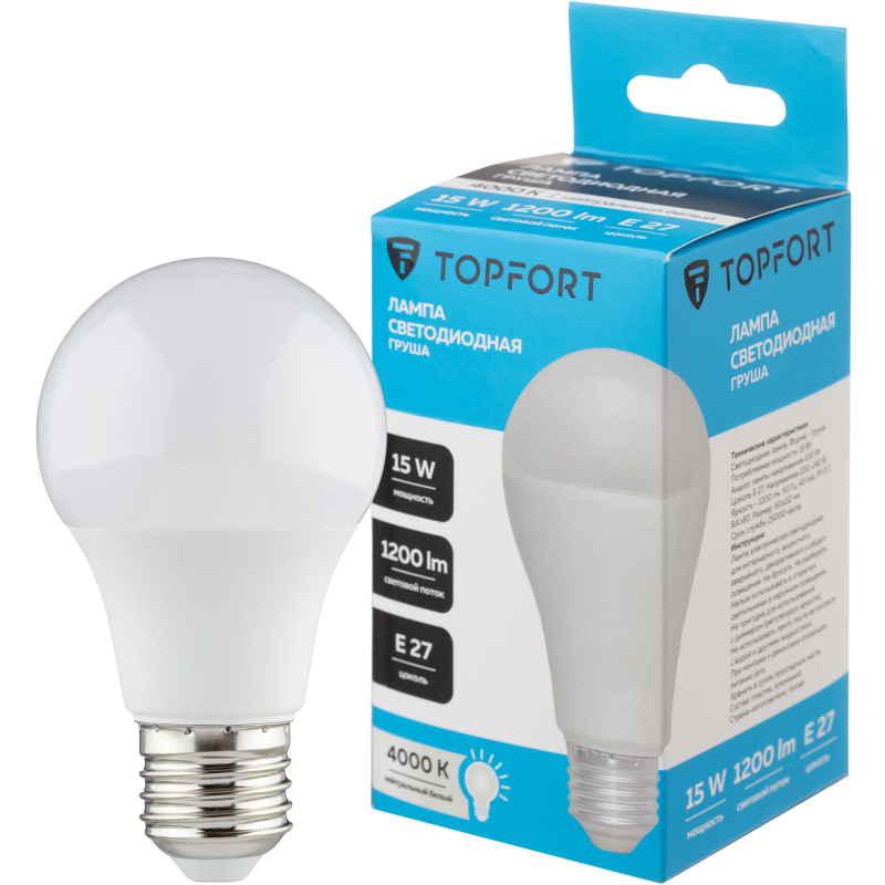 Светодиодная лампа Topfort (матовая) формы груша, с цоколем Е27, мощность 15В. Является аналогом лампы накаливания в 100 Ватт. Матированное покрытие колбы позволяет рассеивать свет максимально приятно для восприятия глазом человека. Преимущества изделия: - Срок службы 25 000 часов - Диапазон рабочих температур от - 25 до +50°C - Отличается низким энергопотребление, что существенно снизит счета за оплату электроэнергии - Создает равномерное естественное освещение - Экологически и пожаробезопасна, не содержит ртути и других вредных химических веществ; - Не требует специальной утилизации; - Отсутствуют низкочастотные пульсации светового потока, негативно влияющих на зрение Характеристики изделий: - Коэффициент цветопередачи Ra ? 80 - Световой поток 1200 Лм - Цветовая температура 4000 К - Угол светового пучка 240° Основные габариты (мм): - Длина 112 мм (L) - Диаметр 60 мм (D) Области применения: - Бытовое использование: потолочные, настенные, настольные светильники, люстры и бра - Коммерческое освещение: мебельные салоны, салоны красоты, столовые, кафе, рестораны, фитнес-центры и т. д. Внешний вид и/или характеристики товара могут быть изменены производителем в соответствии с производственным процессом.