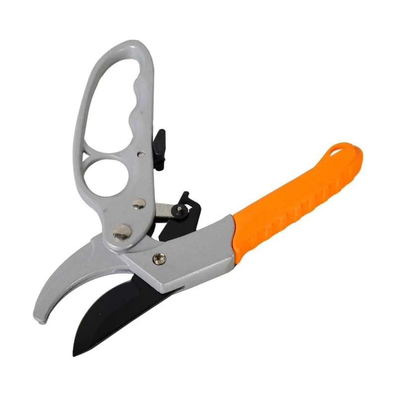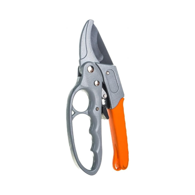 Секатор Вихрь 200 мм с возвратной пружиной, храповым механизмом, тефлоновым покрытием, металлическими обрезиненными рукоятками - ручной инструмент для обрезки веток. Секатор Вихрь изготовлен из высококачественной углеродистой стали, обладает гладким и ровным срезом, что полезно для растений и наносит им минимальный урон во время обрезки веток. Режущее лезвие имеет тефлоновое покрытие. Благодаря качественной подгонке деталей и заточке лезвий, не требуется больших усилий во время реза. Модель оснащена храповым механизмом, который позволяет даже толстые ветки обрезать с минимальным усилием. Секатор оснащен возвратной пружиной, что позволяет работать одной рукой, а рукоятки имеют качественное покрытие для удобного хвата.Внешний вид и/или характеристики товара могут быть изменены производителем в соответствии с производственным процессом.
