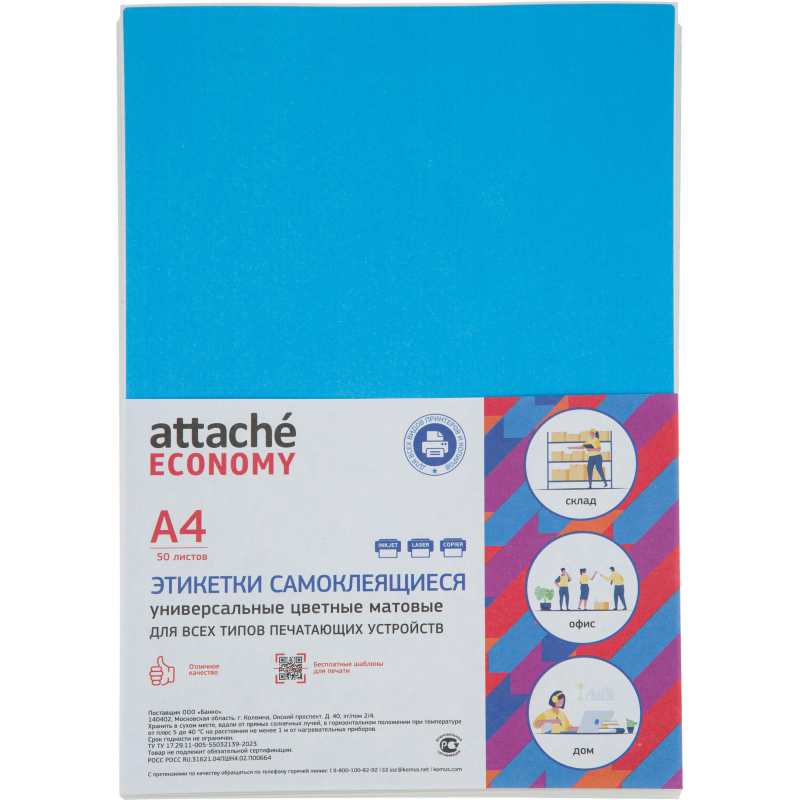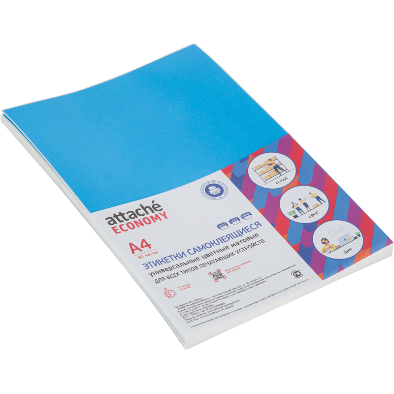 Этикетки самоклеящиеся Attache Economy 210х297мм голубая 1шт/л А4 50л/уп