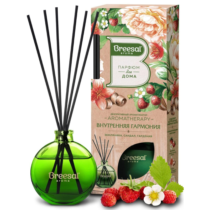 Диффузор ароматический с натуральными эфирными маслами Aromatherapy от Breesal поможет устроить сеанс ароматерапии и использовать ее целительные свойства прямо у вас дома. Просто выберите свой ароматизатор для дома - тонизирующий, расслабляющий или пробуждающий чувства - и позвольте ему творить чудеса! Чтобы эфирные масла для дома раскрыли все свои свойства, просто поместите палочки во флакон с ароматической жидкостью и уже через несколько часов они наполнят комнату своей энергией, который будет вдохновлять вас до 45 дней. Премиальная упаковка аромадиффузора - стильный флакон изумрудного цвета, черные палочки из полиэфира, коробка из крафтового картона - делают ароматический диффузор Aromatherapy отличным подарком и стильным предметом интерьера. Дарите гармонию себе и тем, кого вы любите. Аромат: земляника, сандал, гардения. Объем: 70 мл.