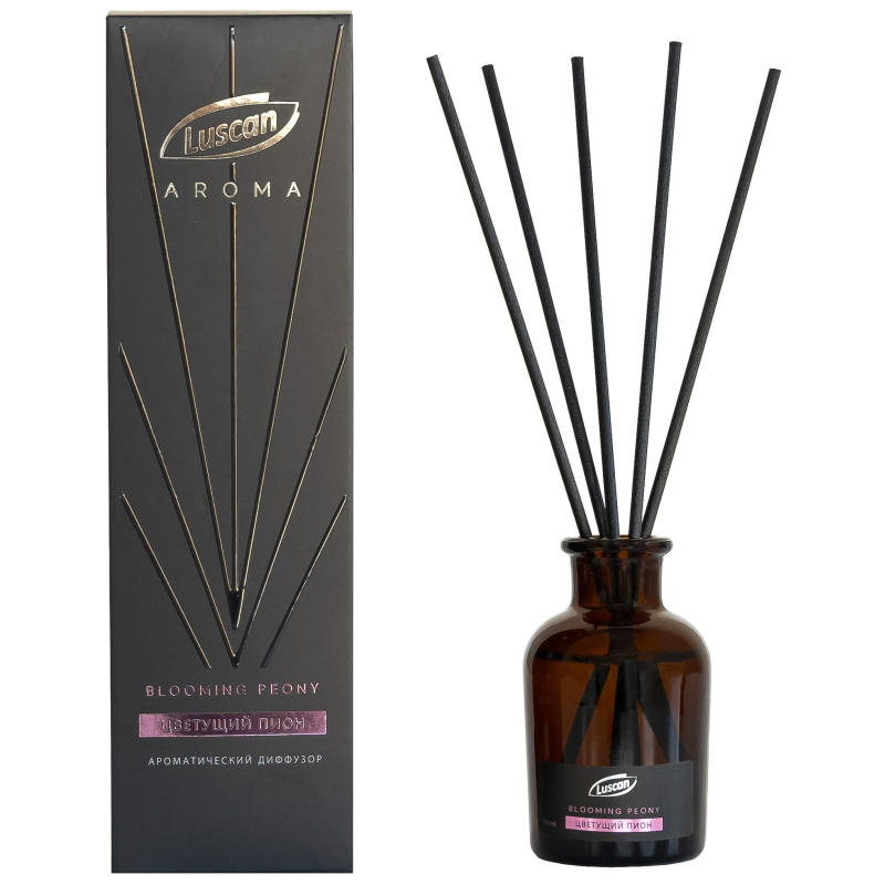Аромадиффузор Luscan Цветущий пион 50 мл. Одной из важных составляющих уюта в доме считается аромат. Аромадиффузор с палочками Luscan Цветущий пион - это самый простой, изящный, эффективный и долговременный способ ароматизации пространства, набирающий свою популярность во всем мире день ото дня. Диффузор представляет их себя небольшую бутылочку, в которую вставляются специальные палочки. Насыщаясь жидкостью в бутылочке, они начинают распространять приятный аромат.Ноты аромата: верхние ноты: сладкий горошек, цитрусы; средние ноты: фрезия, пион, роза, персик; нижние ноты: мускус, пачули.Состав: 30% и более основа, не содержащая этиловый спирт; 15% и более, но не менее 30% ароматическая композиция. Объем: 50 мл.Упаковка: картонная коробка и термоусадочная пленка.Срок действия: до 5 недель. Срок годности в закрытом состоянии: неограничен. Страна изготовитель: Россия.Способ применения: открыв упаковку, извлеките бутылочку и комплект палочек. Определите ровную, недоступную для детей и питомцев поверхность, где будет стоять диффузор. Достаньте бутылочку и вставьте палочки. Запах распространится по комнате, создавая ненавязчивый фоновый аромат. Насыщенность аромата можно регулировать количеством используемых палочек (чем больше палочек, тем насыщенней аромат).