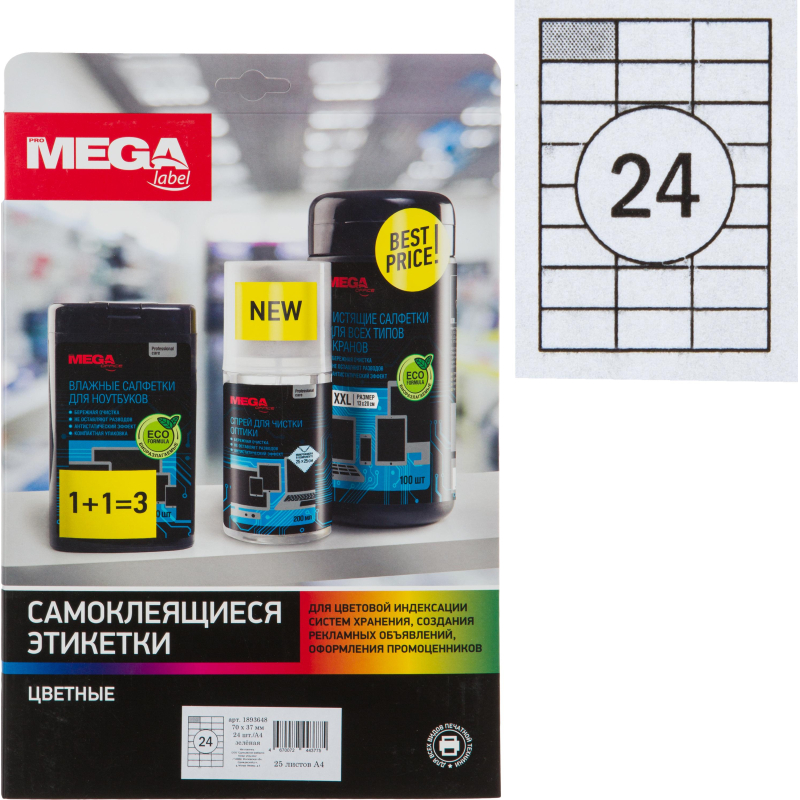 Этикетки самоклеящиеся Promega label 70х37мм зеленая 24ш/л А4 25л/уп