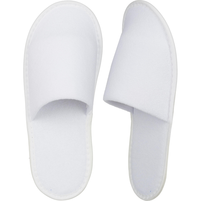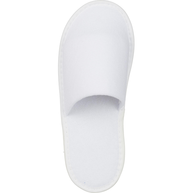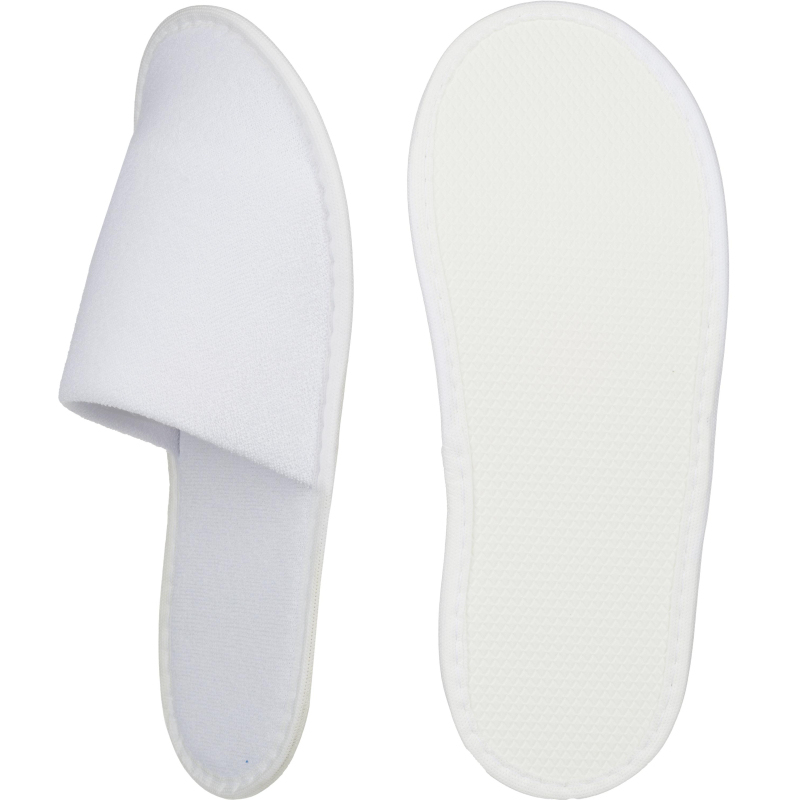 Одноразовые тапочки белого цвета для гостиничных номеров, а также различных медицинских и косметологических учреждений. Верх: махра. Подошва (слои снизу вверх): - ЭВА толщиной 3 мм - картонная стелька толщиной 0,5 мм Имеют универсальный размер: 38-42. Каждая пара упакована в индивидуальный полиэтиленовый пакет. Продаются упаковками по 100 пар.