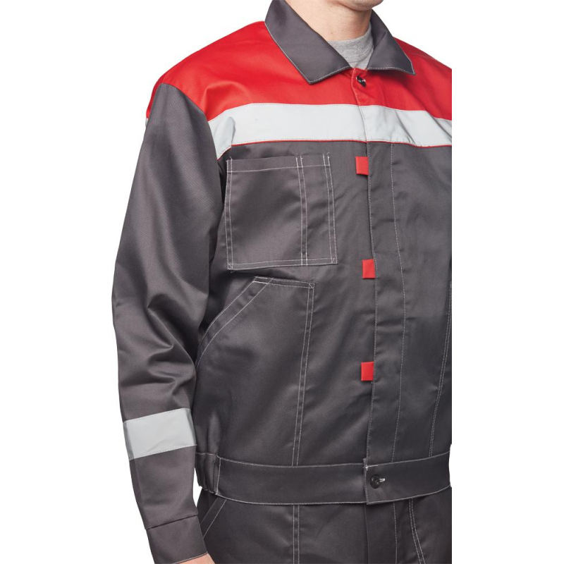 Костюм рабочий летний мужской модели Л20-КБР выполнен в сером цвете с красными вставками. Состоит из куртки и брюк. Размер 68-70, рост 170-176. Изготовлен из смесовой ткани - 65% полиэстер, 35% хлопок. Плотность ткани 210 г/кв.м. Куртка прямого силуэта с притачным поясом и боковыми вставками с эластичной лентой, для лучшего прилегания. Для защиты от истирания локтевая и коленная части костюма усилены. Все элементы костюма выделены контрастной отстрочкой. На кокетке, рукавах и брюках светоотражающая полоса - 5 см. Сферы применения: сельское хозяйство, логистика, легкая промышленность, строительство, озеленение. Костюм обеспечивает защиту от производственных загрязнений. Соответствует стандартам ГОСТ 12.4.280-2014, ТР ТС 019/2011.