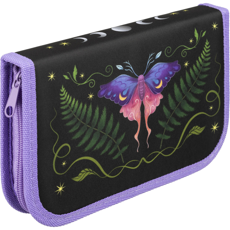 Пенал Комус Класс Сказочный лес - тканевый контейнер из полиэстера для хранения и транспортировки канцелярских принадлежностей. Дизайн пенала выполнен в черном и фиолетовом цветах с изображением волшебного леса. Предназначается для мальчиков младших и средних классов школы. Пенал размером 200x130x20мм имеет одну секцию (без наполнения). В нее с легкостью поместятся все необходимые для обучения инструменты.
