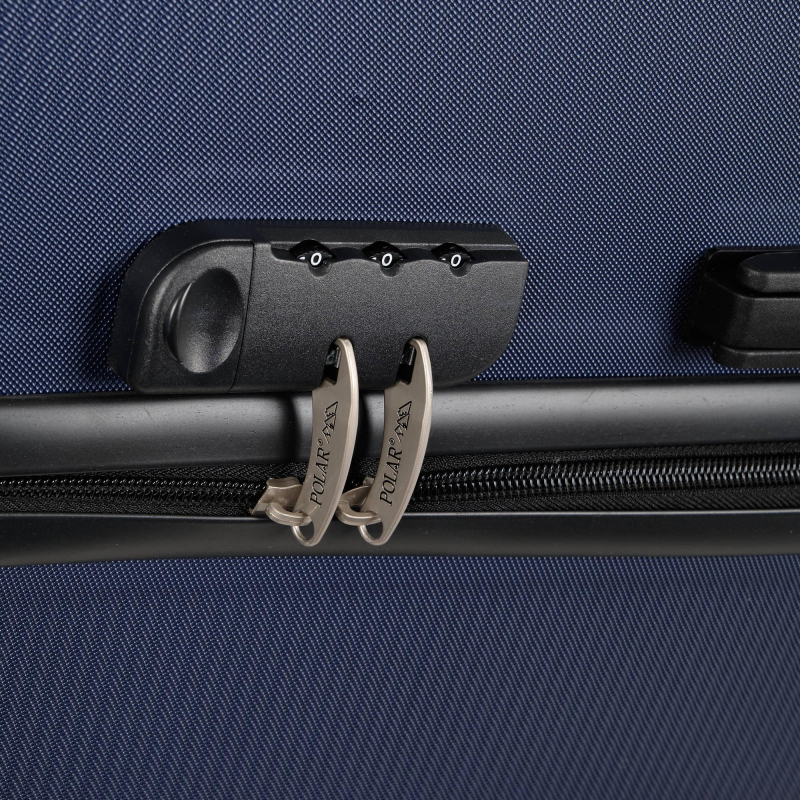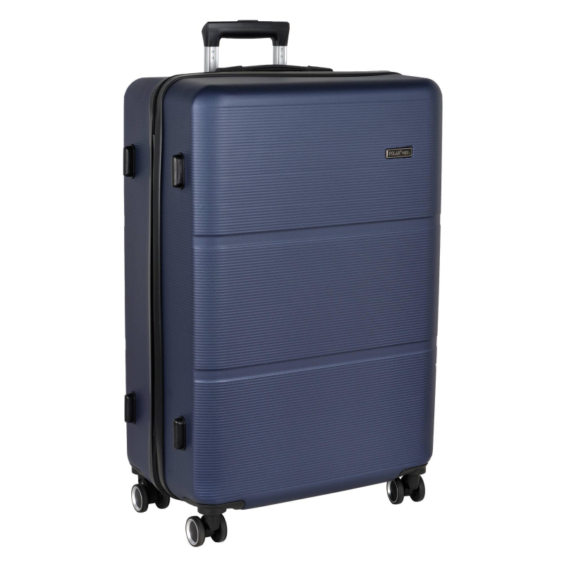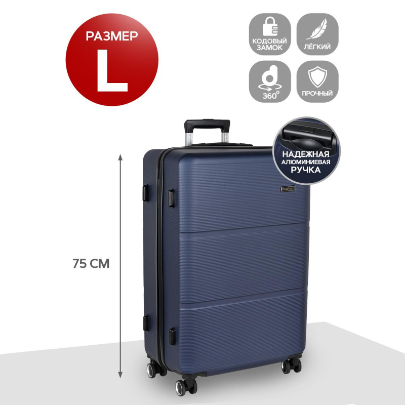 Чемодан фирмы Polar, размер L (объем 93 л), выполнен из ABS-пластика. Основное отделение разделено на две части. Одно имеет фиксирующие ремни, второе на молнии. Выдвигающаяся ручка расположена внутри корпуса чемодана, что способствует большей прочности и защите от ударов при разгрузке/погрузке чемодана. Выдвигающаяся ручка фиксируется в двух положениях. Есть кодовый замок. Надежные 4 колеса.