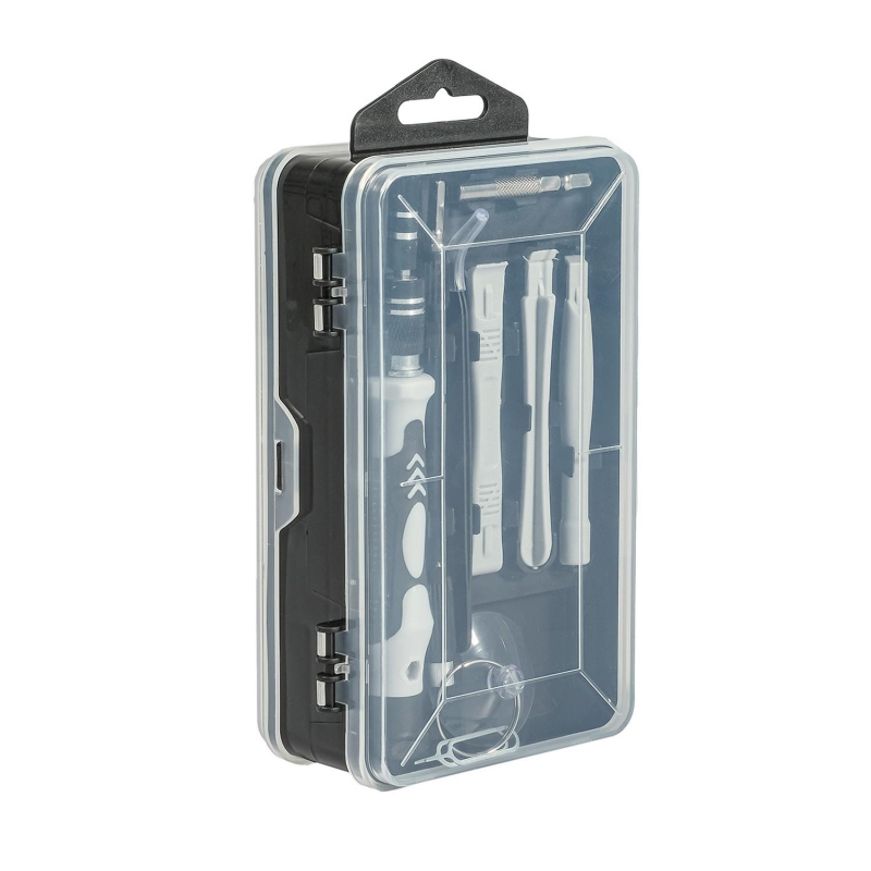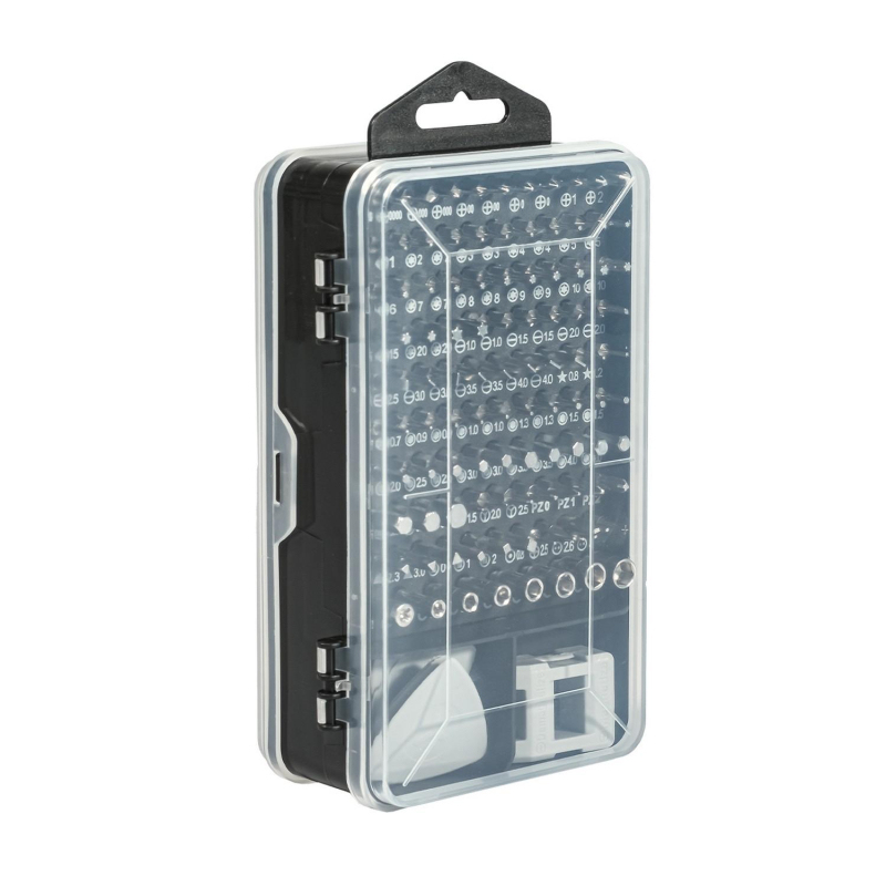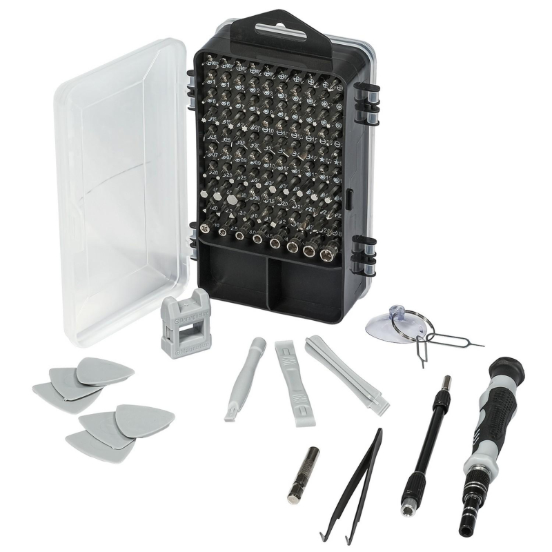 Набор для ремонта смартфонов и ноутбуков отлично подойдет для ремонтных мастерских, а так же для многочисленных бытовых задач. В комплекте есть все необходимые насадки и переходники, магнитная отвертка с удобной прорезиненной ручкой, гибкий адаптер, ключ SIM, пинцет и все необходимые биты и головки, все в удобном кейсе и всегда под рукой. может быть отличным подарком для мастеров данной сферы. Комплектация: - Отвертка-держатель для бит: 1 - Гибкий вал: 1 - Держатель для бит: 1 - Пинцет: 1 - Лопатка: 3 - Ключ для SIM карты: 2 - Магнит: 1 - Присоска: 1 - Медиатор: 6 - Биты 25 мм: 98 - Удлинитель для бит: 1 - Кейс: 1Внешний вид и/или характеристики товара могут быть изменены производителем в соответствии с производственным процессом.