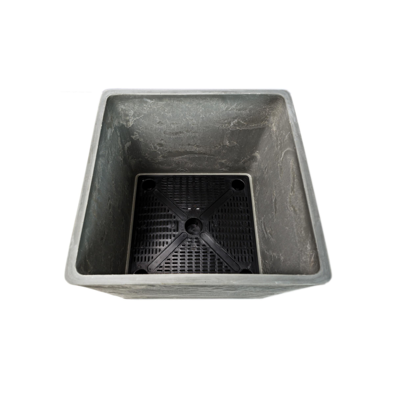 Среднее квадратное кашпо для растений с дренажным вкладышем, для цветов и растений современного дизайна, с оригинальной текстурой "под камень" в светло-сером цвете. Дренажный вкладыш позволяет регулировать воду в нем, между горшком и вкладышем есть пространство для воды, которая используется растениями при необходимости и позволяет сохранять влагу. Кашпо изготовлено из специализированного ЭКО пластика, в состав которого входит битый камень, древесная мука с полимерами, из-за свойств состава материала, кашпо дышащее как керамика. Материал ударопрочный, не боится мороза и на солнце не выгорает Материал: битый камень, древесная мука. полимеры Цвет: светло-серый Общий объем горшка - 23 л. Длинна - 300 мм, высота - 300 мм, ширина - 300 мм.
