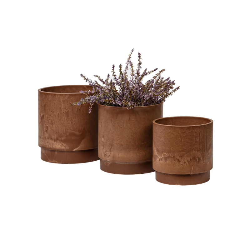 Круглое кашпо для цветов с дренажным вкладышем, для цветов и растений современного дизайна, с оригинальной текстурой "под камень" в шоколадном цвете. Дренажный вкладыш позволяет регулировать воду в нем, между горшком и вкладышем есть пространство для воды, которая используется растениями при необходимости и позволяет сохранять влагу. Кашпо изготовлено из специализированного ЭКО пластика, в состав которого входит битый камень, древесная мука с полимерами, из-за свойств состава материала, кашпо дышащее как керамика. Материал ударопрочный, не боится мороза и на солнце не выгорает Материал: битый камень, древесная мука. полимеры Цвет: коричневый Общий объем горшка -10 л. Диаметр - 262 мм, высота - 250 мм.