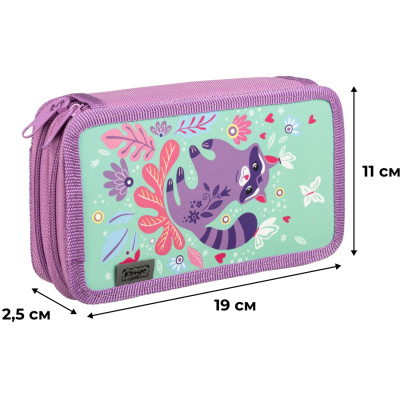 Пенал Комус Класс Енот - вместительный контейнер из картона софт-тач для хранения и транспортировки канцелярских атрибутов. Предназначается для девочек, учащихся в дошкольных и младших классах школы. Пенал размером 190x110x45 миллиметров имеет два просторных отделения. Он сделан в форме 'книжки', что придает ему особую компактность и удобство в использовании. Дизайн пенала выполнен в светло-зеленом цвете с изображением енота. Пенал Комус Класс Енот - стильный и практичный выбор для учебы. В него с легкостью поместятся и будут надежно храниться все необходимые для обучения инструменты. В товар не входит дополнительное наполнение.