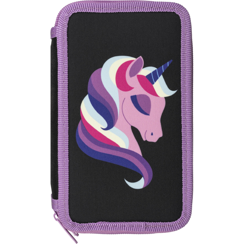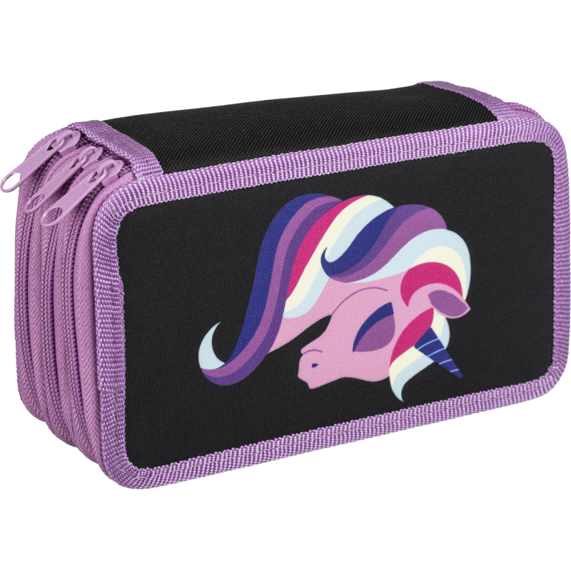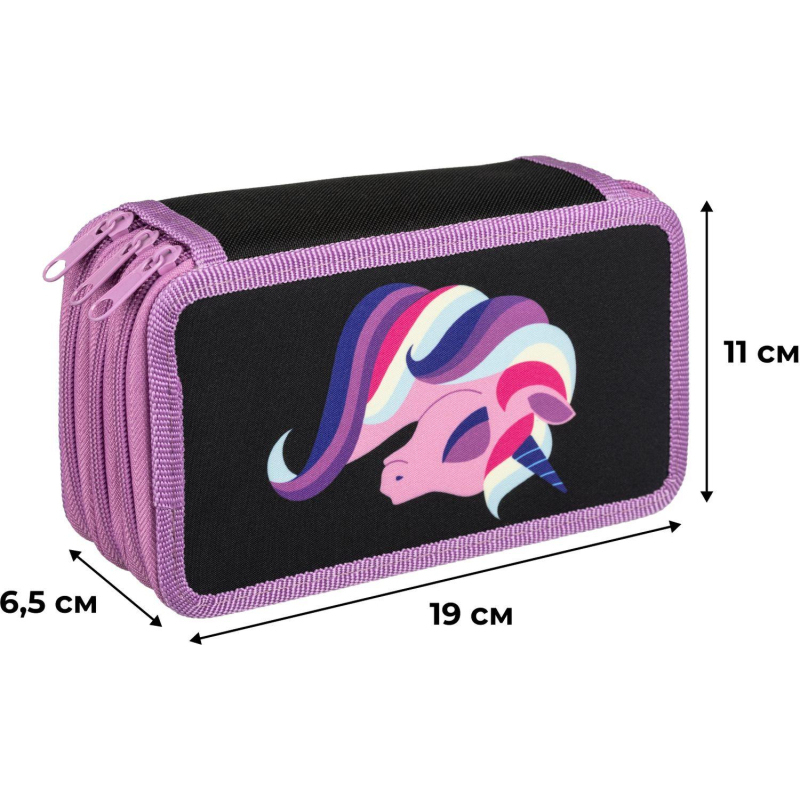 Пенал Комус Класс односекционный Единорог - вместительный контейнер из полиэстера для хранения и транспортировки канцелярских атрибутов. Предназначается для девочек, учащихся в дошкольных и младших классах школы. Пенал размером 190x110x65 миллиметров имеет три просторных отделения. Он сделан в форме 'книжки', что придает ему особую компактность и удобство в использовании. Дизайн пенала выполнен в черном цвете с изображением единорога. Пенал Комус Класс Единорог - стильный и практичный выбор для учебы. В него с легкостью поместятся и будут надежно храниться все необходимые для обучения инструменты. В товар не входит дополнительное наполнение.