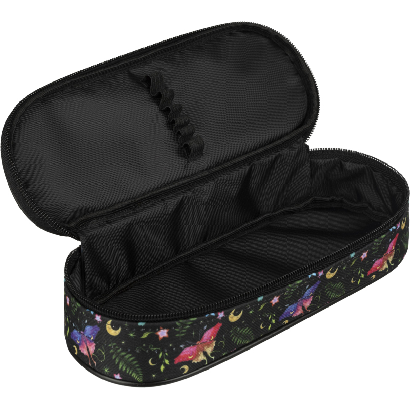 Пенал односекционный Комус Класс Сказочный лес - вместительный контейнер из полиэстера для хранения и транспортировки канцелярских атрибутов. Предназначается для учениц средних классов школы и студенток. Пенал размером 220x90x50 миллиметров сделан в форме футляра, что придает ему особую компактность и удобство в использовании. Дизайн пенала выполнен в черном цвете с изображением волшебного леса. Пенал Комус Класс Сказочный лес - стильный и практичный выбор для учебы. В него с легкостью поместятся и будут надежно храниться все необходимые для обучения инструменты. В товар не входит дополнительное наполнение.