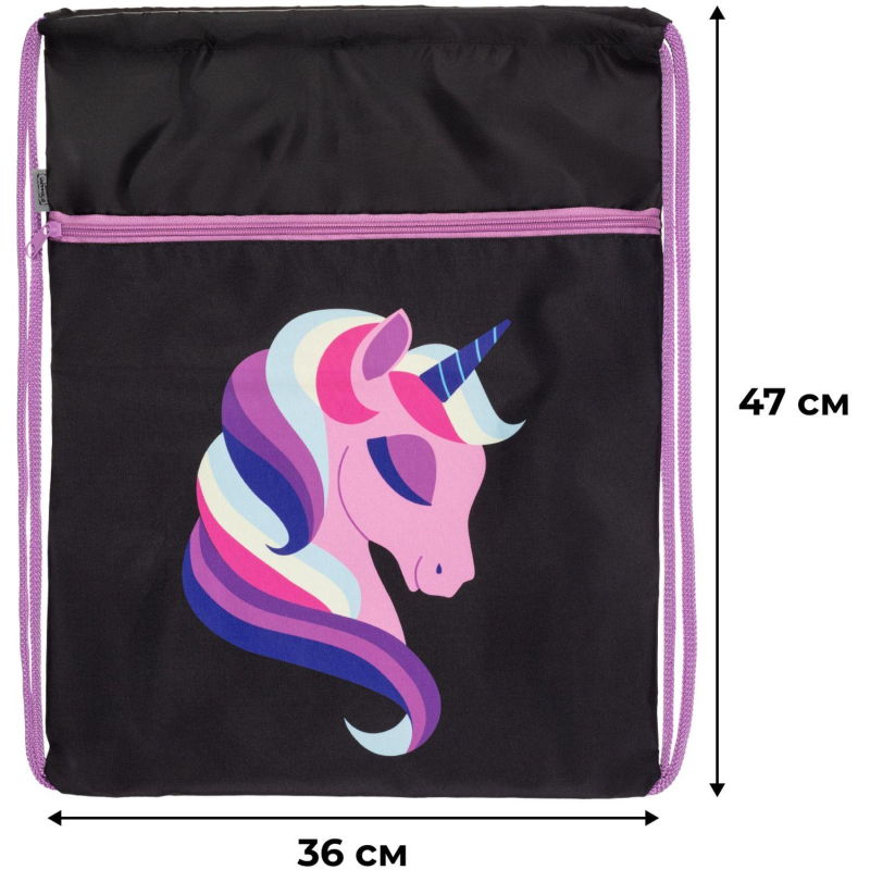 Мешок для обуви Комус Класс Единорог - вместительная и удобная в использовании емкость для хранения и переноса обувных изделий. Мешок размером 360х470 мм сделан из полиэстера и имеет два просторных отделения. Его дизайн выполнен в черном цвете с изображением единорога. Мешок предназначается для девочек. В нем удобно и практично переносить сменную обувь в учебные заведения или спортивные секции. Мешок надевается на спину с помощью двух наплечных лямок, комфортно ощущается и не занимает много пространства. Не включает элементы светоотражения.