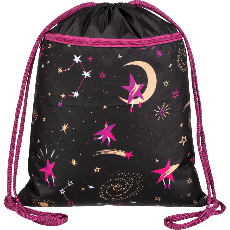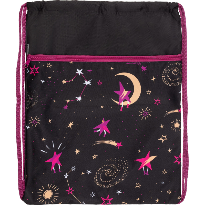 Мешок для обуви Комус Класс Звездное небо - вместительная и удобная в использовании емкость для хранения и переноса обувных изделий. Мешок размером 360х470 мм сделан из полиэстера и имеет два просторных отделения. Его дизайн выполнен в черном цвете с изображением звездного неба. Мешок предназначается для девочек. В нем удобно и практично переносить сменную обувь в учебные заведения или спортивные секции. Мешок надевается на спину с помощью двух наплечных лямок, комфортно ощущается и не занимает много пространства. Не включает элементы светоотражения.