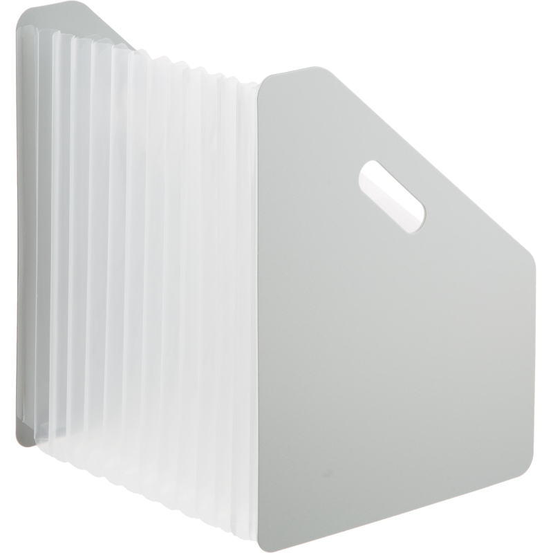 Вертикальный накопитель марки Deli для документов формата А4. Выполнен из прочного качественного пластика. Накопитель выполнен в стильном дизайне, эргономичен и удобен при пользовании. Вместительный и портативный лоток для хранения бумаг и документов. Содержит 13 отделений, которые позволяют структурировать документацию и быстро находить нужный файл. Лоток не занимает много места на столе. Продается в собранном виде. Цвет: серый. Окошки для маркировки: нет. Размеры: 325x257x20 мм. Максимальный размер: 325x257x200 мм. Вес: 0.344 кг.