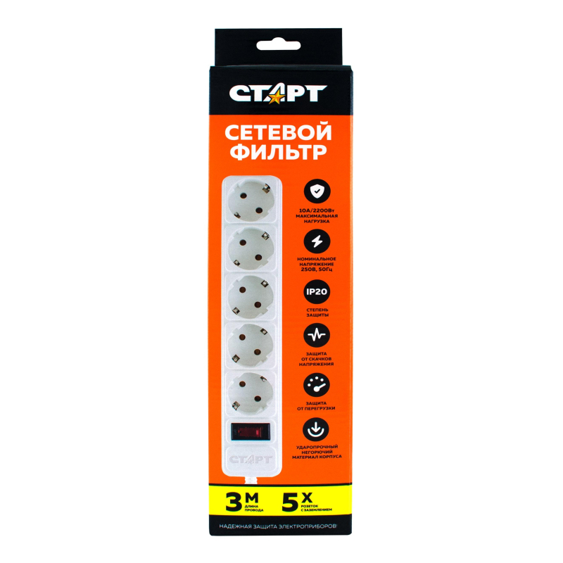 Сетевой фильтр СТАРТ С/УД-Ф SP 5x3 ZVT 5р/3м 10А/2200Вт белый