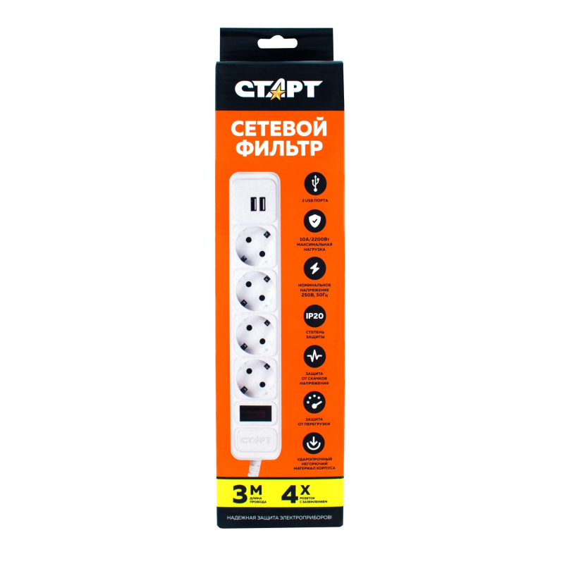 Сетевой фильтр Старт на 4 розетки 3 метра Внешний вид и/или характеристики товара могут быть изменены производителем в соответствии с производственным процессом.