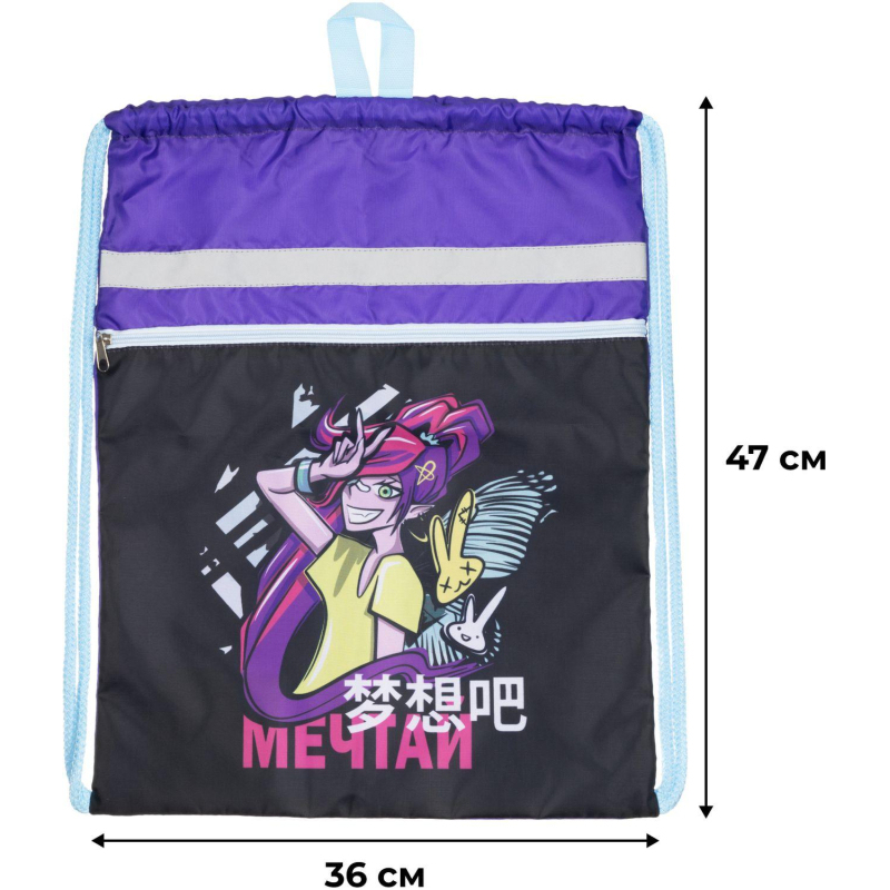 Мешок для сменной обуви Комус Класс Мечтай - эргономичная сумка для хранения и переноса обувных изделий. Мешок размером 360х470 мм сделан из материала оксфорд и имеет два просторных отделения. Его дизайн выполнен в черном и сиреневом цветах с надписью ?мечтай?. Дизайн сумки предусматривает элементы светоотражения. Мешок подойдет для девочек школьного возраста. В нем удобно и практично переносить сменную обувь в учебные заведения или спортивные секции. Сумка надевается на спину с помощью двух наплечных лямок, комфортно ощущается и не занимает много пространства.
