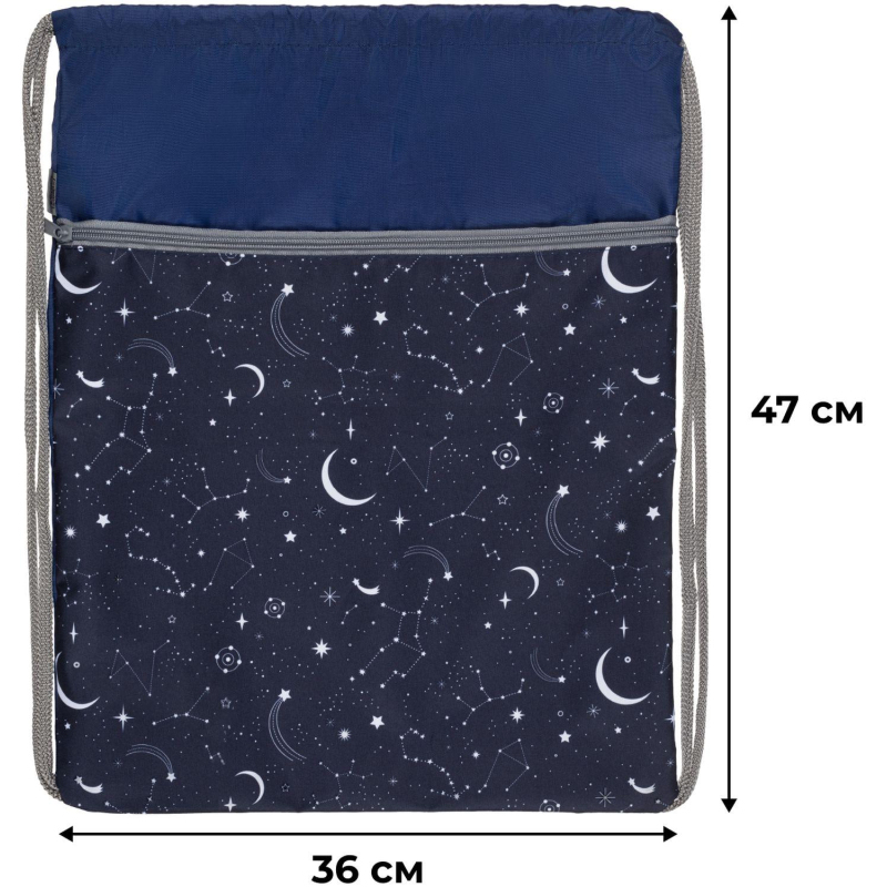 Мешок для сменной обуви Комус Класс Месяц - вместительная и удобная в использовании емкость для хранения и переноса обувных изделий. Мешок размером 360х470 миллиметров сделан из материала полиэстер и имеет одно просторное отделение. Его дизайн выполнен в синем цвете с изображением звездного неба (не предусматривает элементы светоотражения). Мешок предназначается для девочек. В нем удобно и практично переносить сменную обувь в учебные заведения или спортивные секции. Он легко надевается на спину с помощью двух наплечных лямок, комфортно ощущается и не занимает много пространства.