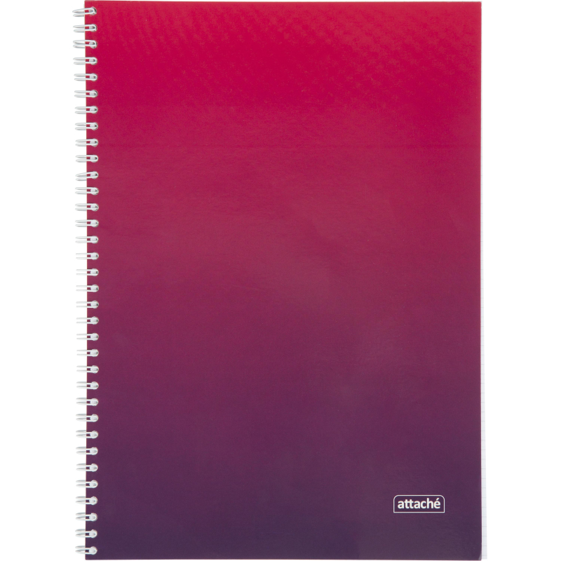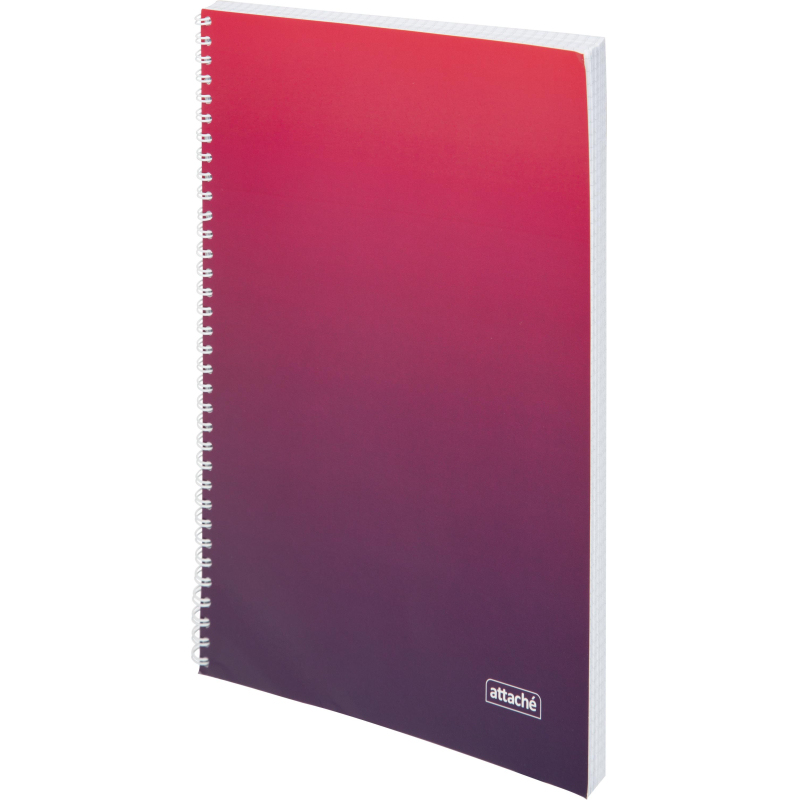 Тетрадь общая Attache Градиент формата А4 (204х291 мм). Обложка и подложка изготовлены из мелованного картона 190 г/м2. Блок-офсетная бумага 60г/м2, разлинованная в клетку. Количество листов в блоке - 96. Тетрадь скреплена металлическим гребнем (спиралью) по длинной стороне слева. Применяется в школах, высших учебных заведениях и офисах.