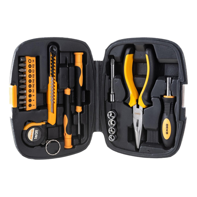 Набор инструментов универсальный Deko TZ21 21 предмет (065-0212) включает в состав оборудование, выполненное из высокопрочной стали, которая прошла дополнительную закалку и специальную обработку. Это защищает инструмент от коррозии, а также делает его более устойчив к любым физическим деформациям. Наличие бит и головок упрощает демонтаж крепежа. Использование типового удлинителя обеспечивает доступ к крепежу, заглубленному или расположенному слишком далеко. Преимущество кейса для транспортировки инструмента заключается в его прочности и наличии индивидуальной позиции для хранения каждого элемента набора в отдельности. Это существенно повышает удобство использования и упрощает поиск и подбор подходящего инструмента или оснастки. Внешний вид и/или характеристики товара могут быть изменены производителем в соответствии с производственным процессом.
