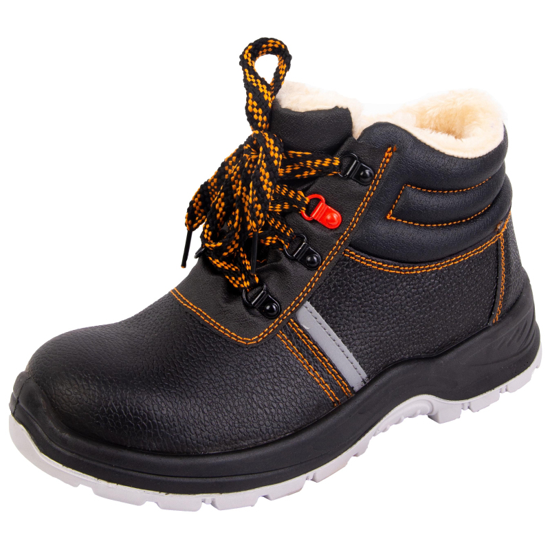 Ботинки рабочие утепленные модели Оранж подойдут как для мужчин, так и для женщин. Выполнены в черном цвете. Размер 43. Защитные ботинки изготовлены из натуральной кожи. Застежка на шнурок и металлические петли. Утеплитель бежевого цвета и выполнен из искусственного меха. Ботинки оснащены металлоподносками, предохраняющими ноги от удара. Подошва двухслойная: полиуретан и термополиуретан. Основной, полиуретановый слой обеспечивает эластичность подошвы и уменьшает вес обуви для комфортного использования. Термополиуретановый слой обладает гибкостью и прочностью, позволяет работать при температуре от -35 градусов до +120 градусов. Литьевой метод крепления подошвы обеспечивает с верхом обуви единое целое, в результате достигается полная герметичность в месте литья. Такой метод крепления является самым прочным и долговечным. Мягкий кант обеспечивает комфортное облегание и боковую поддержку, защищает от возможных боковых ударов, препятствует проникновению грязи и пыли внутрь обуви. Имеется световозвращающий кант для работы в условиях плохой видимости. Верх ботинка имеет контрастные отделочно-скрепляющие строчки оранжевого цвета. Вкладная стелька из нетканого полотна с искусственным мехом. Антипрокольная стелька, дополнительно защищает стопы ног от проколов, порезов, сильных ударов и прочих производственных травм. Колодка обладает полнотно-размерными характеристиками защитной обуви, предназначенной для эксплуатации в зимний и весенне-осенний периоды, дает возможность работать полный рабочий день с комфортом и без усталости. Обувь предназначена для работы в нефтегазовой, горнодобывающей, энергетической, химической промышленности, на транспорте, в агропромышленном комплексе и сервисных службах. Модель предназначена для защиты от кислот и щелочей, от механических повреждений, от общих производственных загрязнений, от пониженных температур, от скольжения, а так же от проколов и ударов. Соответствуют стандартам: ГОСТ 12.4.177-89, ТР ТС 019/2011.