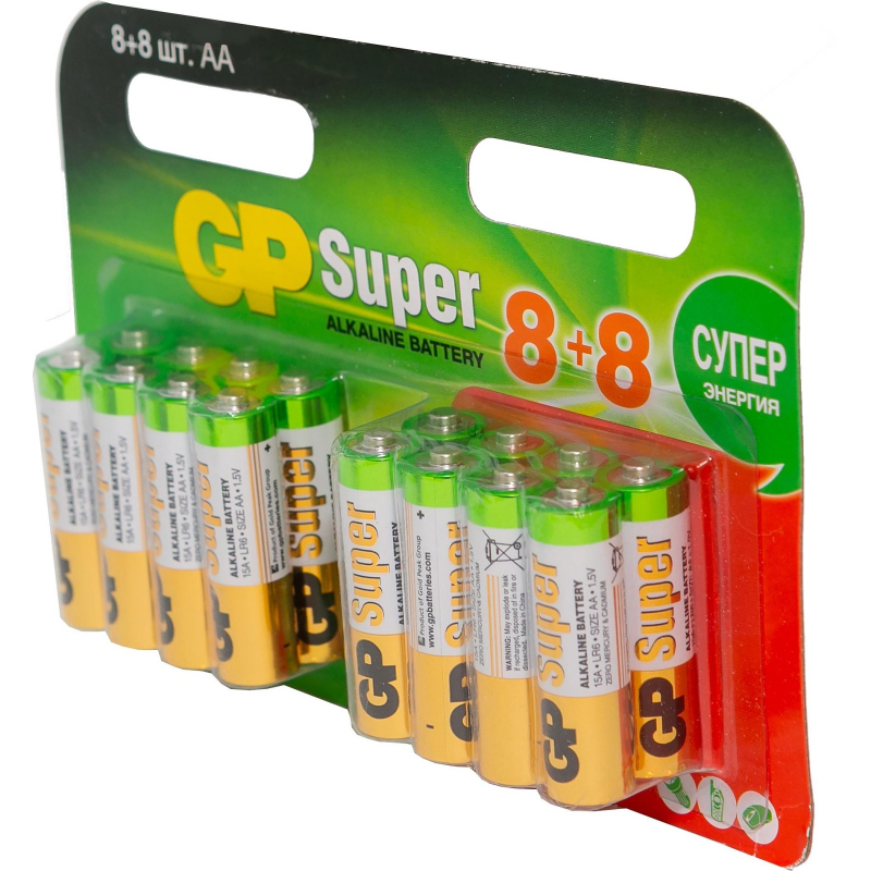 Батарейка AA пальчиковая GP Super (16 штук в упаковке)Внешний вид и/или характеристики товара могут быть изменены производителем в соответствии с производственным процессом.