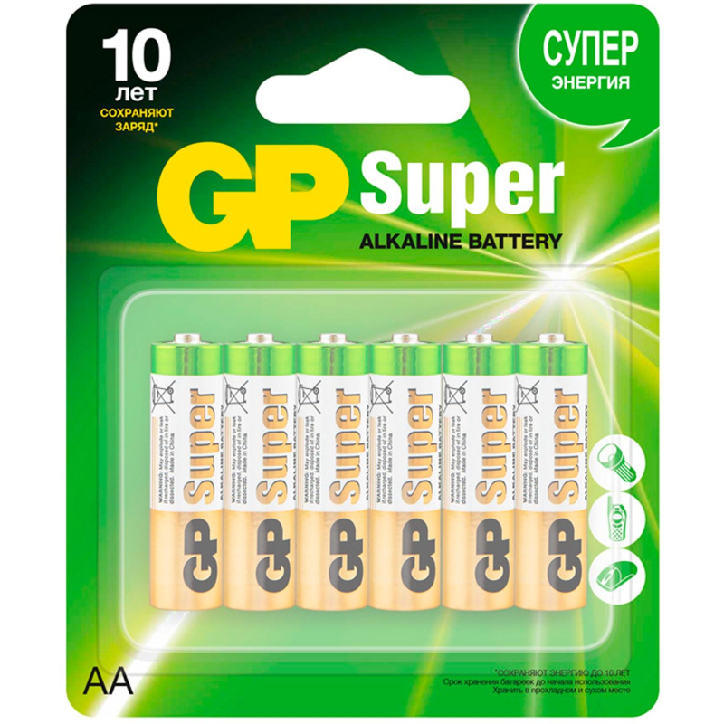 Батарейка AA пальчиковая GP Super (6 штук в упаковке)Внешний вид и/или характеристики товара могут быть изменены производителем в соответствии с производственным процессом.